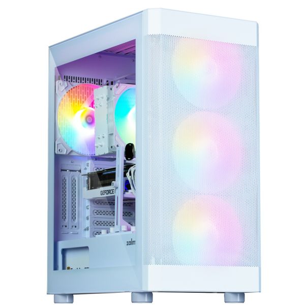 Корпус I4 TG – стильный белый корпус для компьютера без встроенного блока питания. Корпус имеет четыре вентилятора диаметром 140 мм с поддержкой RGB-подсветки, что придает системе эффектный внешний вид.
