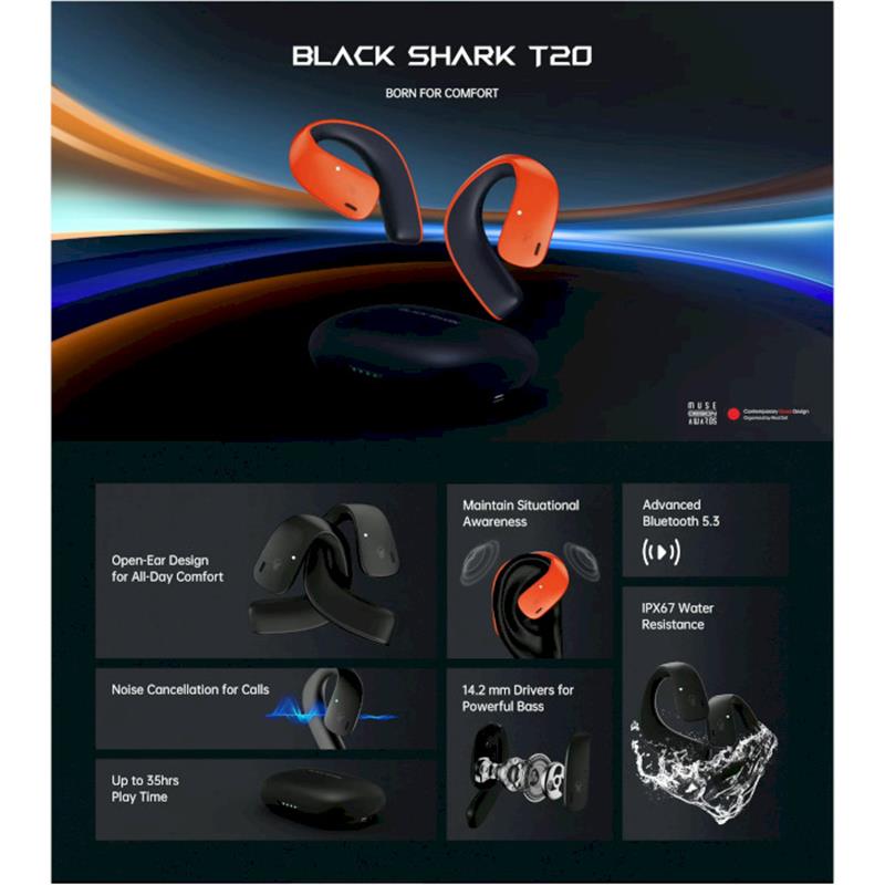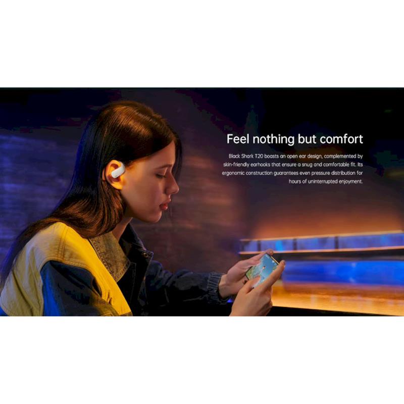 Благодаря выверенной эргономике и специальной форме заушных креплений наушники Black Shark T20 очень удобно носить. Наушники с открытым дизайном не давят на слуховой канал, обеспечивая высокое качество звучания и комфорт в течение всего дня.
