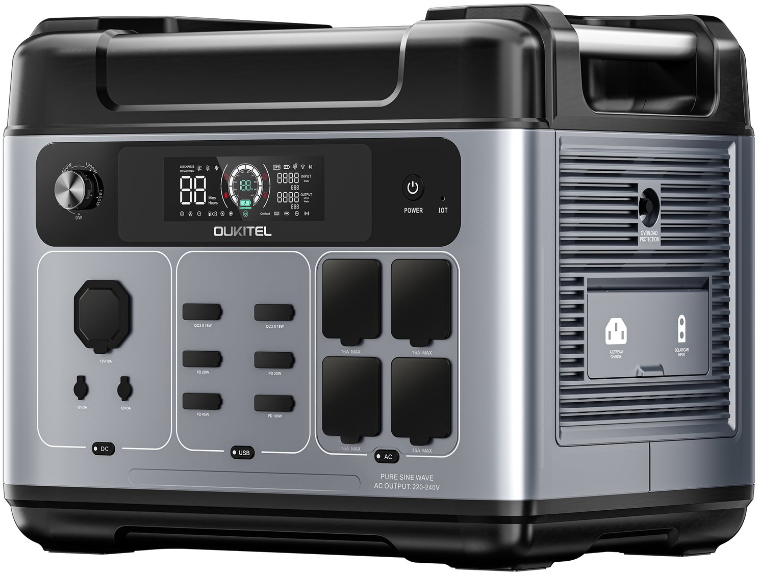 Зарядная станция с чистой синусоидой Oukitel P2001E plus – это надежный резервный источник энергии, которым вы можете пользоваться как дома, так и в длительном путешествии или в кемпинге. Емкости 2048 Вт-ч хватает для питания большинства бытового электрооборудования.