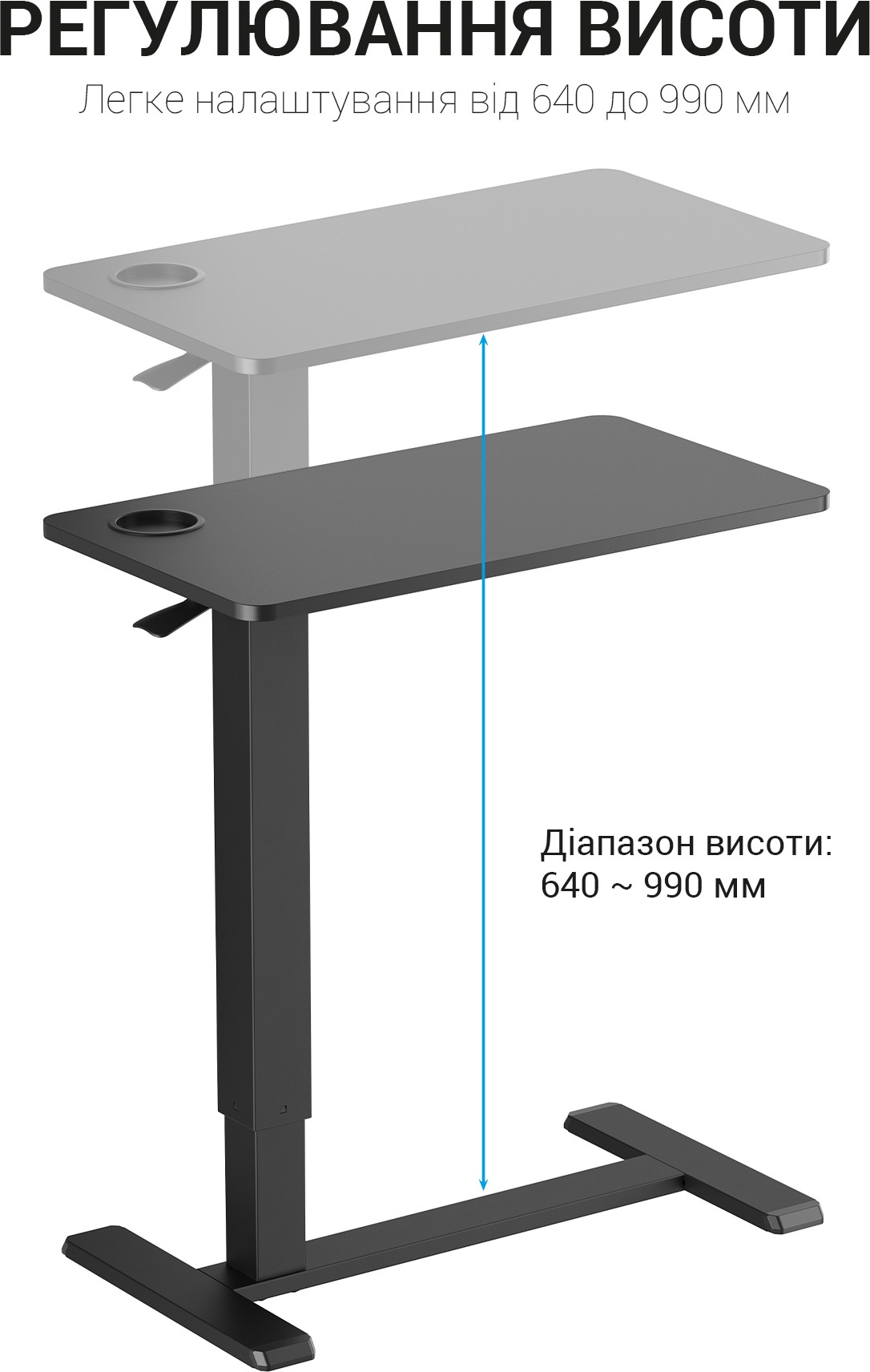 Благодаря плавной и тихой регулировке высоты столик Officepro ODM366BK освобождает пользователей от фиксированной рабочей зоны и повышает общую производительность. Скрытые колесики уменьшают высоту основания стола, чтобы подкатываться почти под любые кровати, диваны и кресла. Газ-лифт премиум-класса с механизмом самоблокировки обеспечивает плавную и легкую регулировку высоты и фиксацию высоту. Прочная подъемная колонна в сочетании с надежной металлической рамой повышает стабильность при письме или печати. Встроенное отверстие для чашки предотвращает падение или ускользание чашки во время движения.