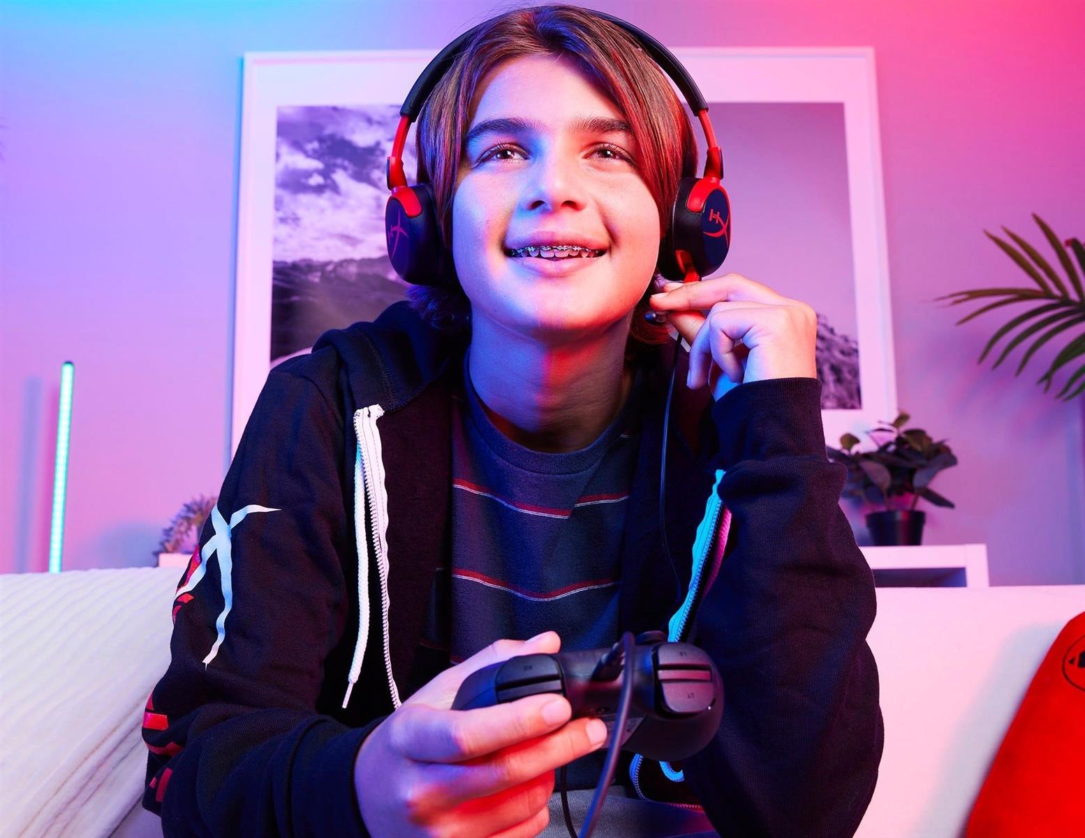 HyperX Cloud Mini — это удобная проводная гарнитура, созданная для начинающих звездных геймеров. Рекомендованная для детей от 8 до 12 лет, она легкая и имеет соответствующий размер для юных геймеров, а главное – уровень звука не превышает 85 дБ. Она оснащена четким микрофоном с возможностью отключения звука, чтобы юные геймеры могли общаться со своими друзьями в Интернете, и мог быть спрятан, когда не используется. Наушники можно поворачивать, когда нужно совершить перерыв, а также их удобно транспортировать или хранить.