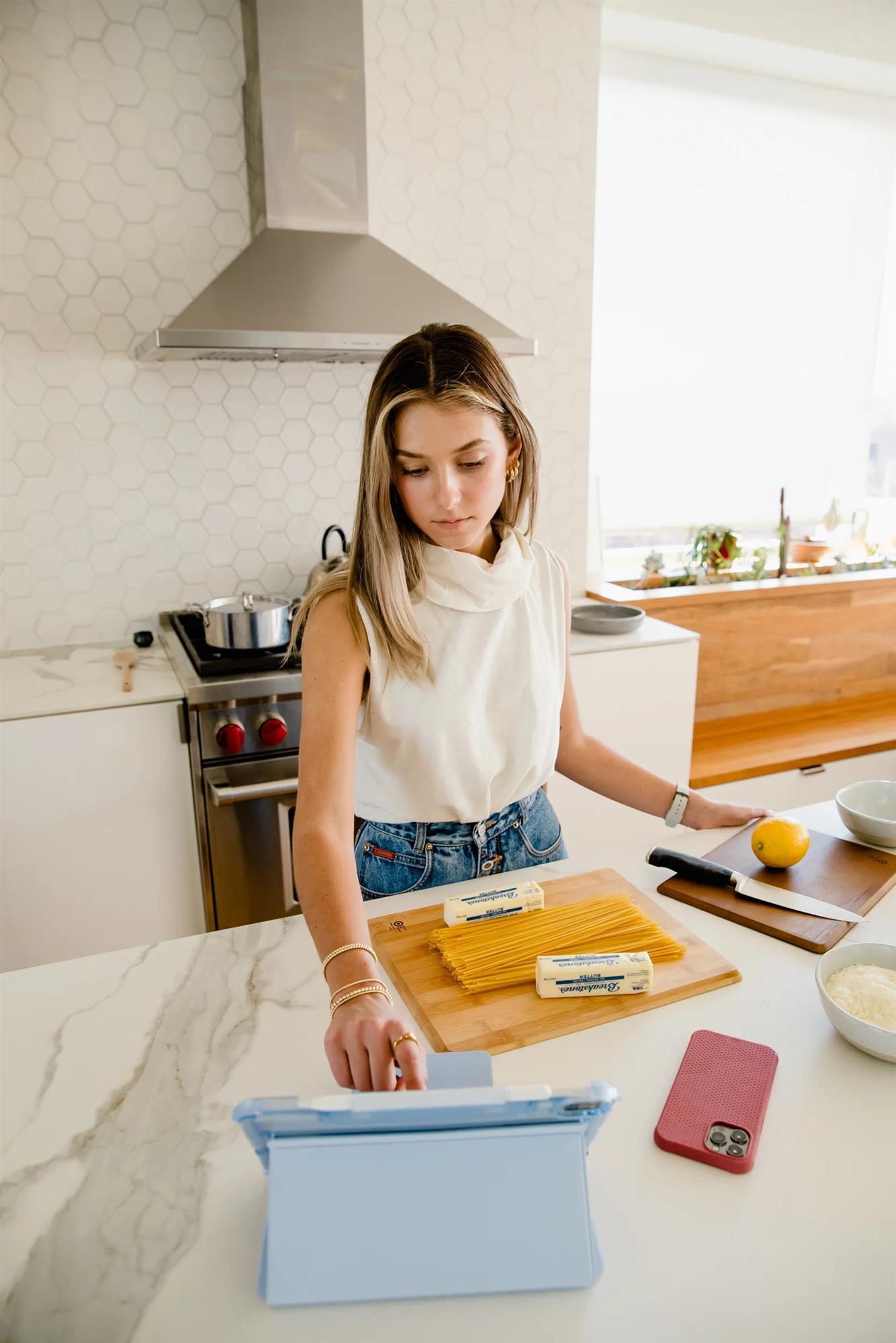 Чехол выполнен из крепкого поликарбоната в сочетании с гибким термопластическим полиуретаном (TPU), что обеспечивает надежную амортизацию во время случайных падений и ударов. Встроенная фолио-крышка выполняет сразу две функции – она защищает экран от царапин и служит подставкой для удобного просмотра видео или работы с документами, а механизм автоматического включения и выключения дисплея при открывании и закрывании крышки позволяет экономить заряд батареи.
