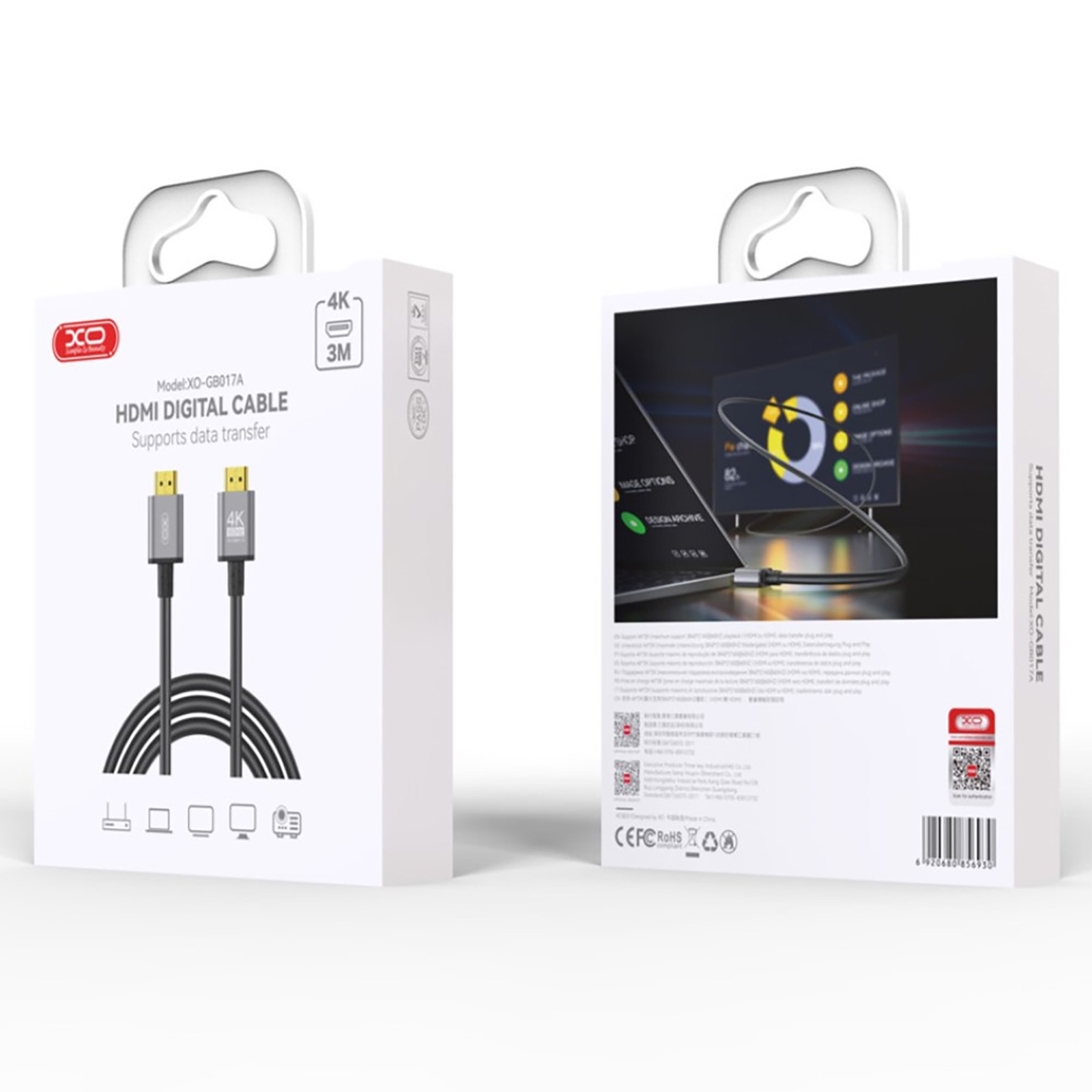 Выводи изображения на внешний дисплей в разрешении UHD 4K с помощью надежного HDMI кабеля XO GB017A-HDMI.