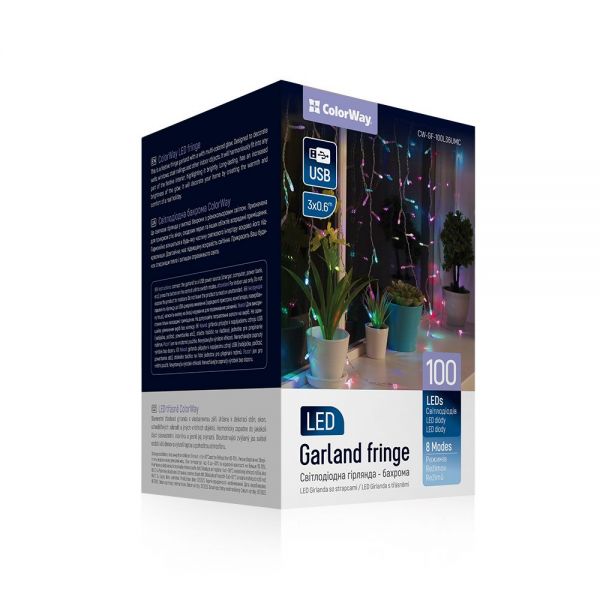 Светодиодная гирлянда ColorWay (CW-GF-100L36UMC) бахрома 100LED, 3мx0.6м, разноцветная USB