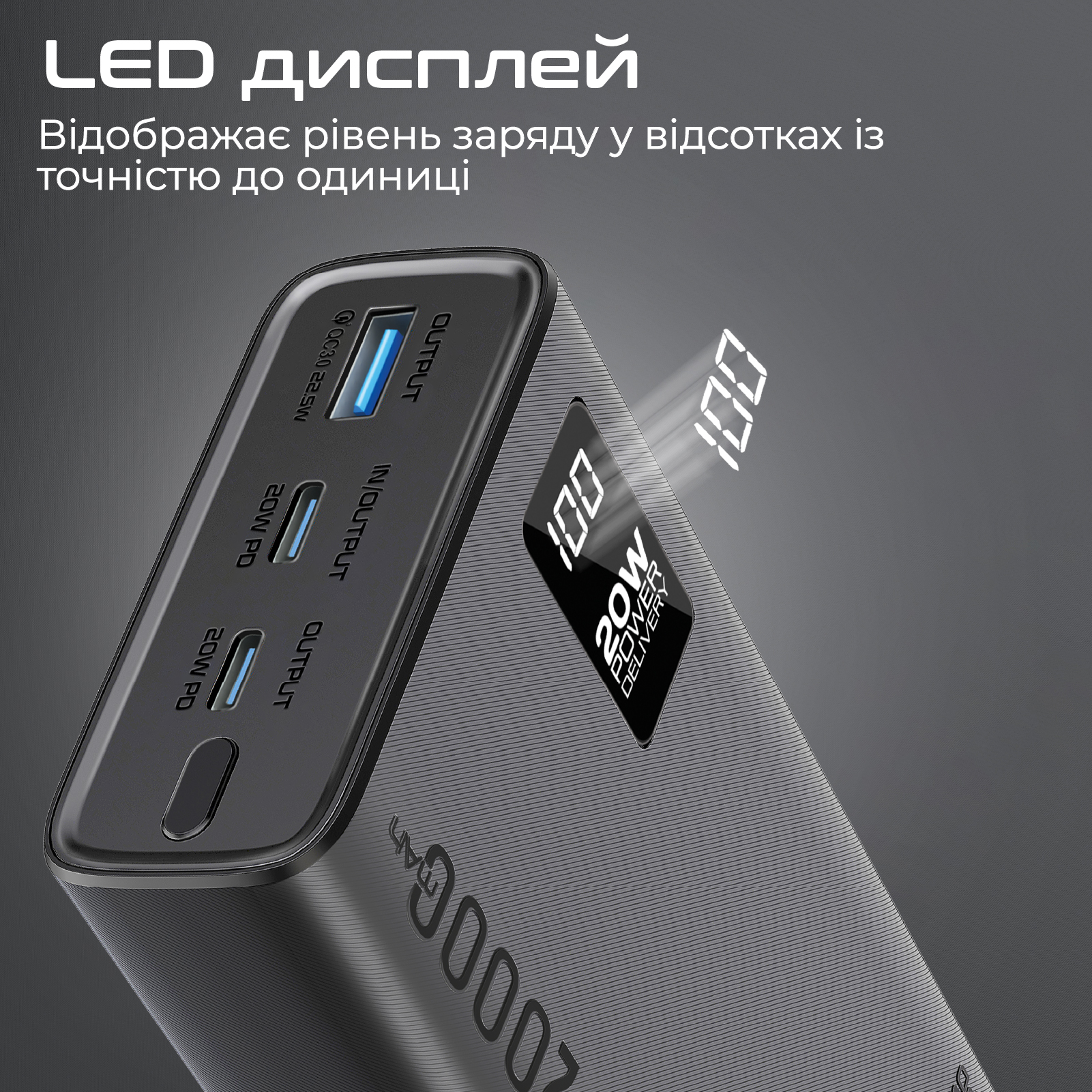 LED-дисплей: Отображает уровень заряда в процентах с точностью до единицы.