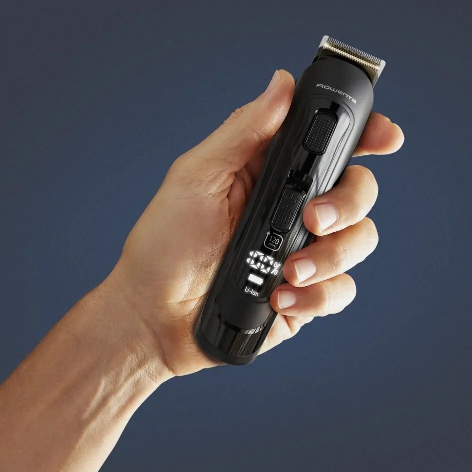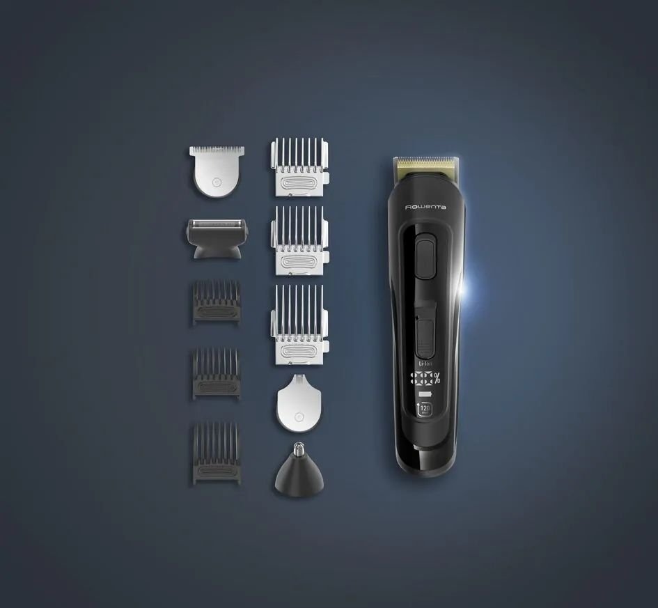 Благодаря современным технологиям, размещаемым в эргономичном компактном корпусе, высококачественным материалам и набору насадок, триммер Rowenta Selectium 12 в 1 идеально точно стрижет, ровняет, оформляет бороду, а также безопасно удаляет нежелательные волосы в носу и ушах.