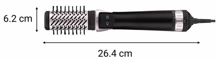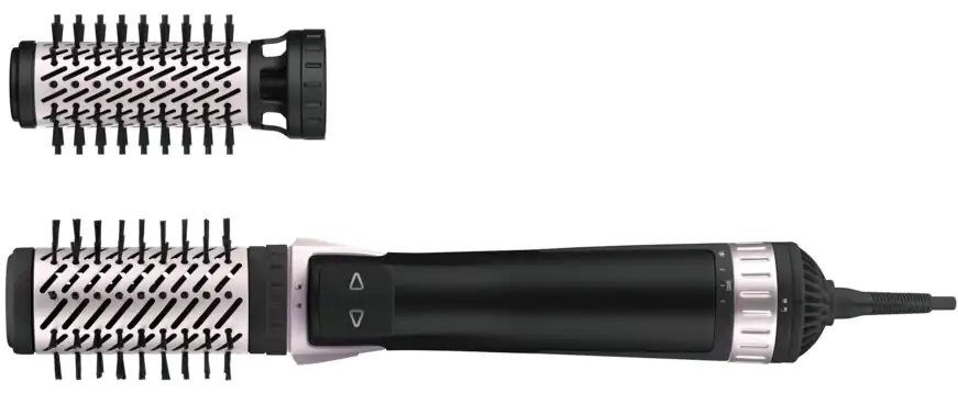 Щетка для горячего воздуха вращается в двух направлениях, чтобы одновременно сушить и укладывать волосы в зависимости от желаемой укладки – для большего удобства в использовании.