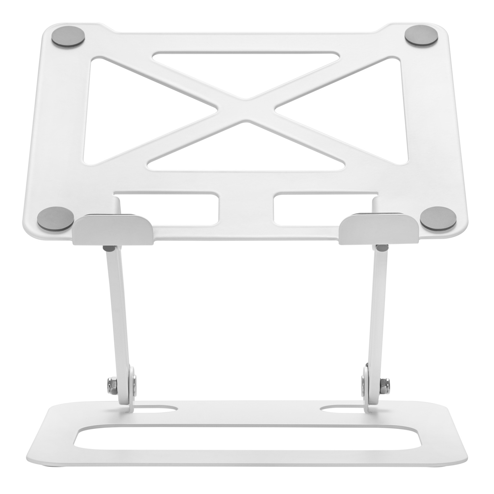 Изготовленная из высококачественной стали складная подставка для ноутбука имеет гладкую поверхность и элегантный внешний вид. Два регулируемые кронштейны, способные прочно держать большинство 11-15-дюймовых ноутбуков. Они обеспечивают еще большую гибкость регулировки высоты и угла для комфортного просмотра и оптимальных рабочих процессов. Открытая область под поверхностью обеспечивает поток воздуха для рассеивания тепла.
