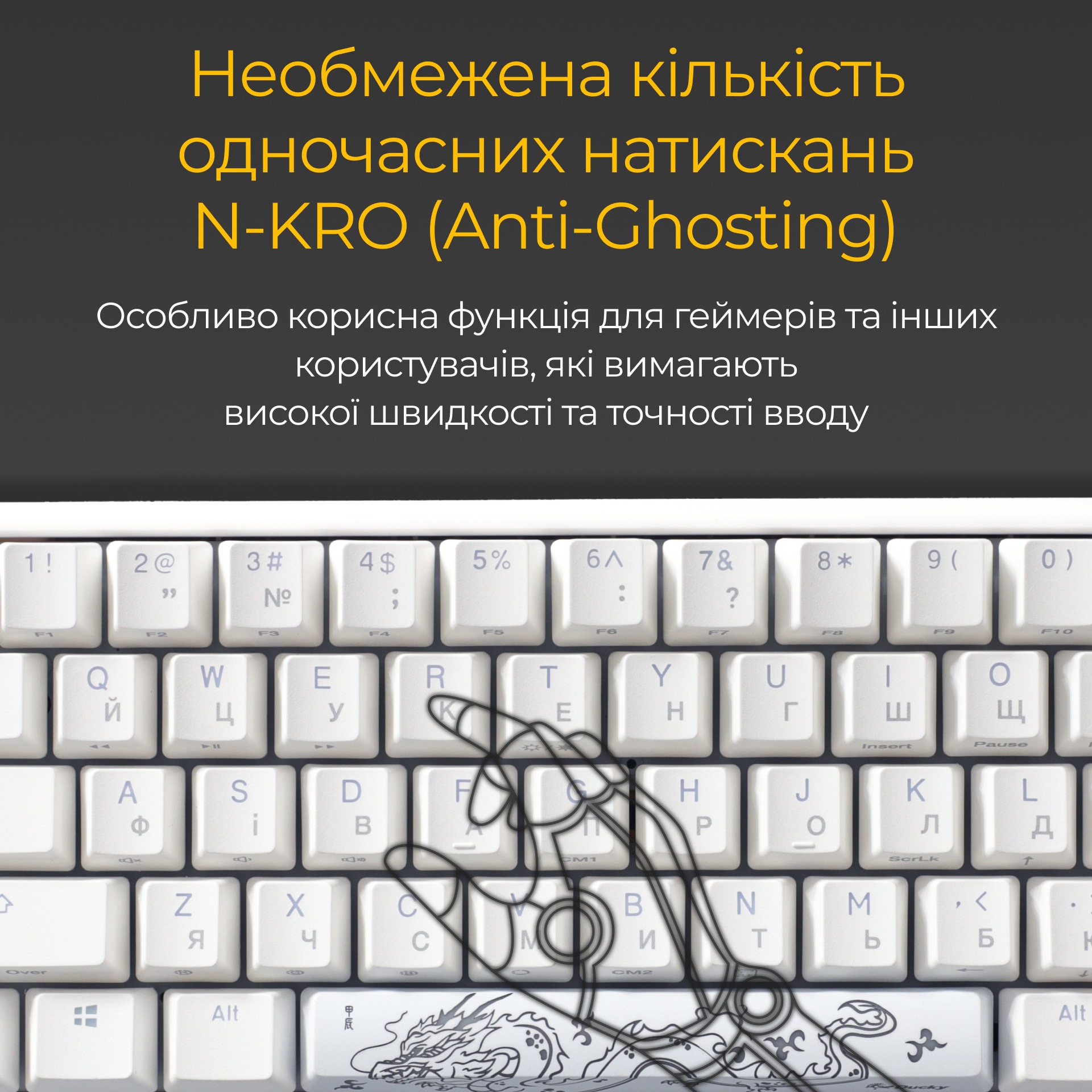 - NKRO технология: Поддержка No Key Rollover обеспечивает точное нажатие каждой клавиши, даже при одновременном нажатии нескольких.