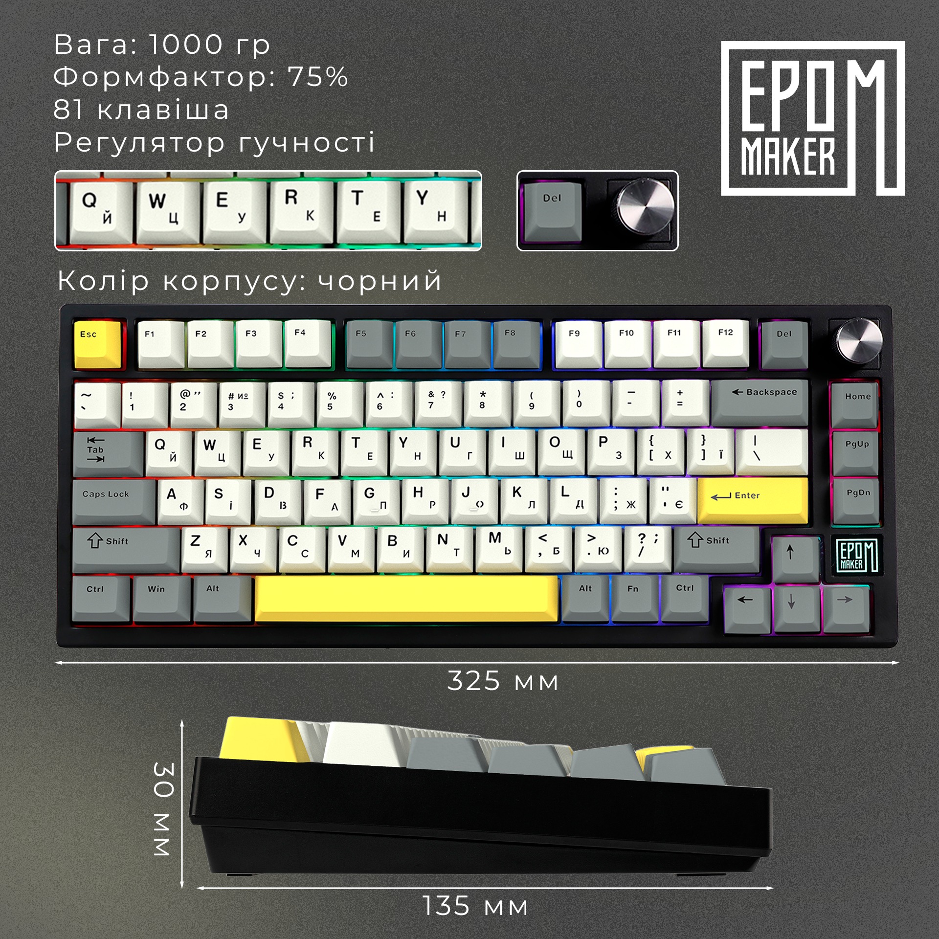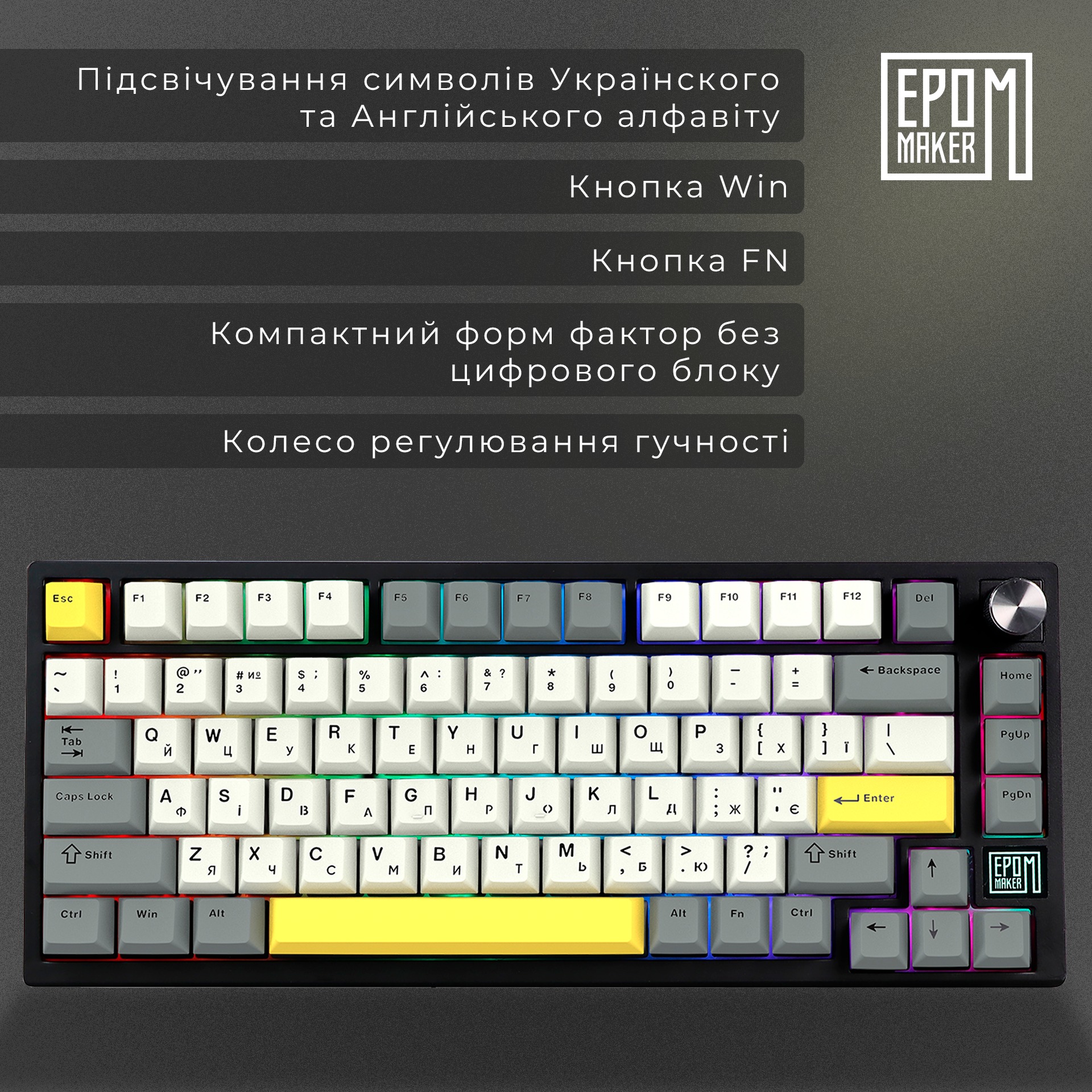 Характеристики Клавиатура беспроводная Epomaker TH80 SE 75% Budgerigar V2 Switch Hot-Swap (2.4G/BT/USB) RGB UA Black (TH80-SE-B-BV2)