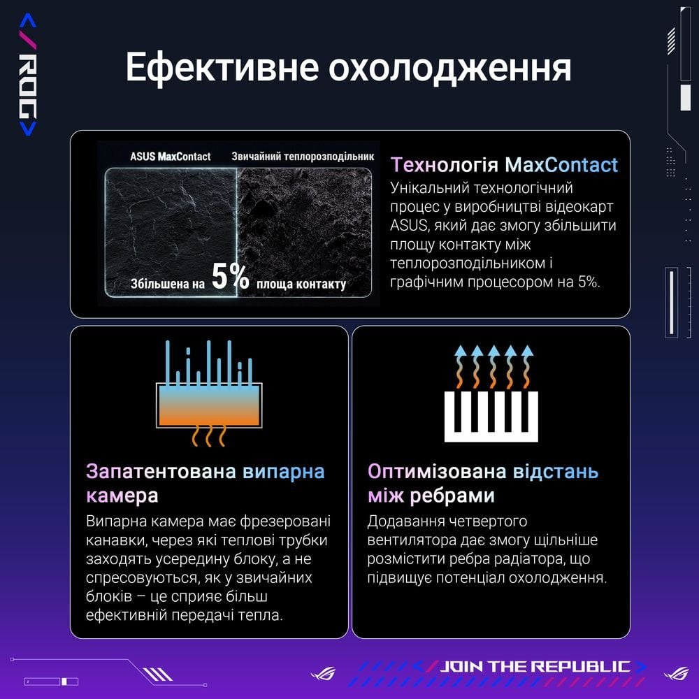 MaxContact — это эксклюзивная производственная технология ASUS, которая эффективно увеличивает площадь поверхности теплораспределителя графического процессора на 5%, повышая тепловую эффективность.