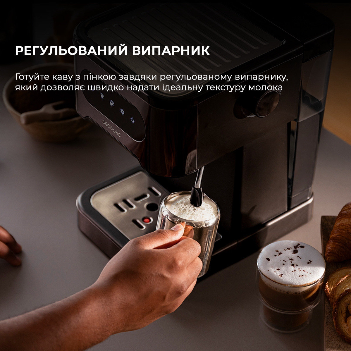 Приготовьте кофе со сливками благодаря регулируемому испарителю, который позволяет быстро придать идеальную текстуру молока по вашему вкусу и насладиться прекрасным кофе.