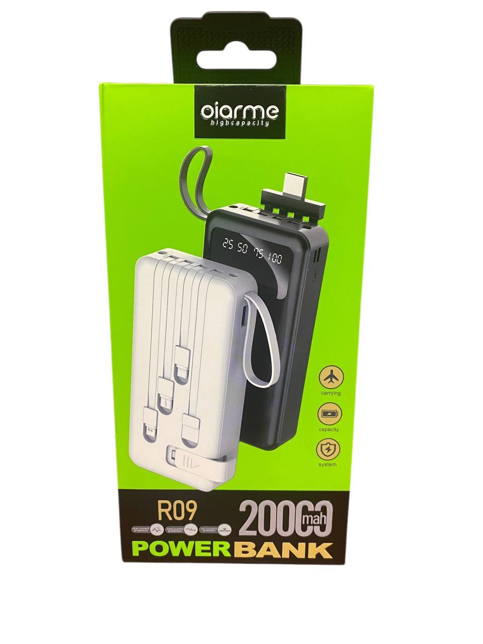 Oiarme R09 20000 mAh – внешний аккумулятор, который не подведет в пути. В нем сосредоточена огромная емкость 20 000 мАч. Такого запаса энергии хватит в среднем на 3-5 полных зарядов смартфона. В его верхней части расположен фонарь, который можно использовать в качестве запасного источника света во время кемпинга. С его помощью вы сможете заряжать четыре устройства одновременно. Сам повербанк заряжается любым кабелем: USB-Type-C и USB-Type-A, micro-USB. устройства. Также повербанк оснащен одним выходным портом USB.