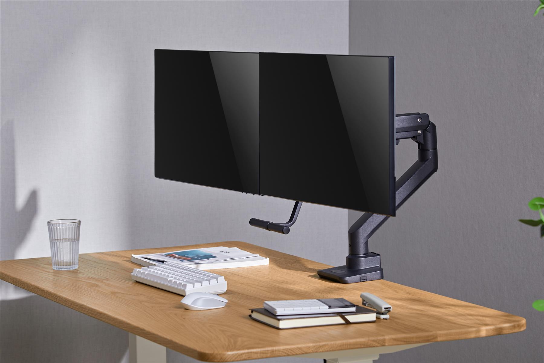 Для пользователей двух мониторов надежным помощником станет кронштейн MA802B. Скользящая рейка обеспечивает плавное расположение двух экранов, а интерактивная ручка позволяет легко изменять расположение одной рукой. Кроме того, быстросъемная пластина VESA и верхнее монтажное основание делают его невероятно удобным в использовании. Выведите свой опыт работы с двойным монитором на новый уровень с помощью MA802B.