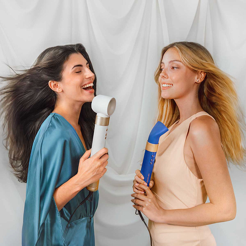 Насадка Coanda притягивает волосы и обхватывает их вокруг головы, создавая идеальные локоны за считанные секунды.