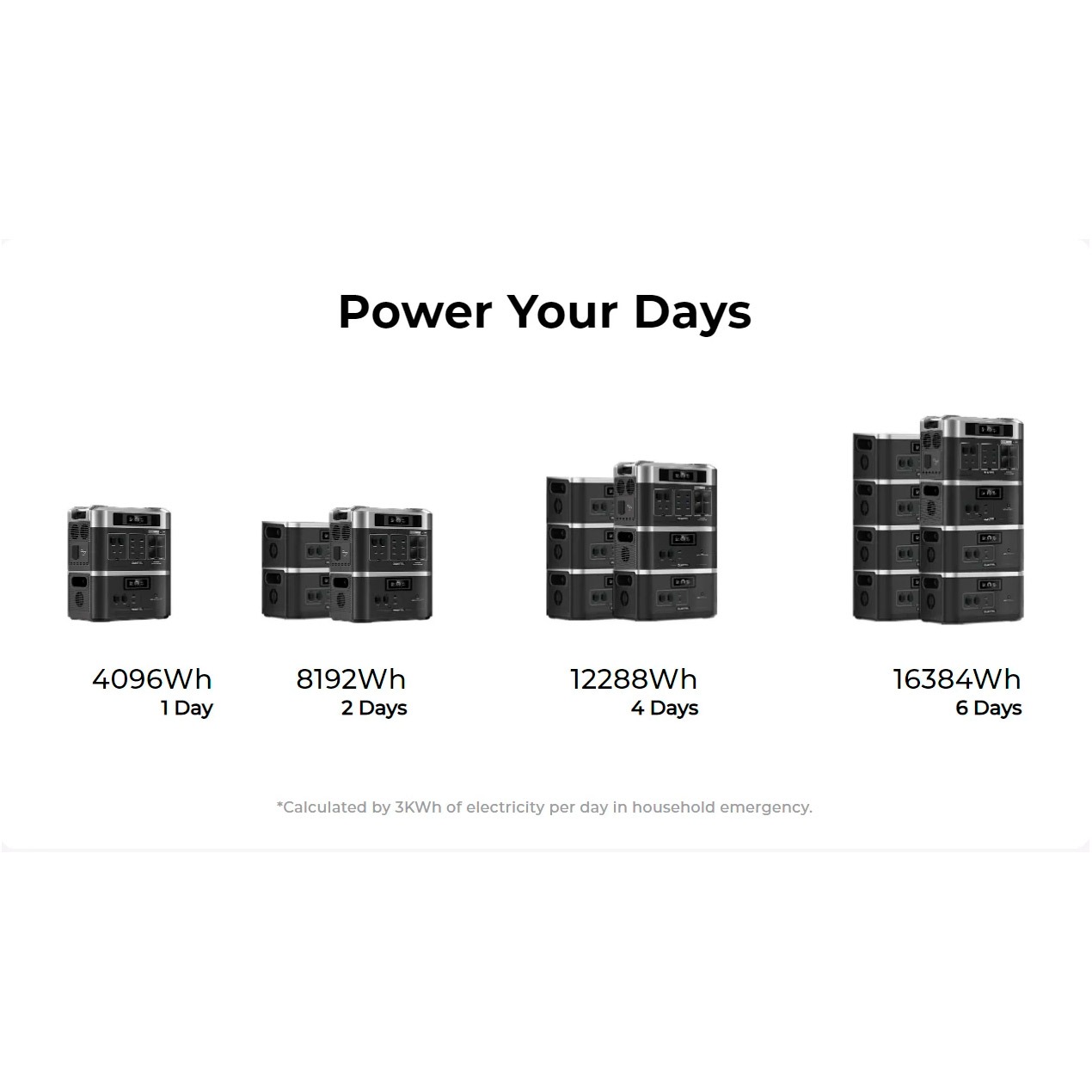 Объедините BP2000 Pro с 7 батареями расширения B2000 параллельно, чтобы достигнуть 16 кВт/ч, что может обеспечить питание в течение 1-6 дней во время перебоев с электричеством. Идеально подходит для домашнего резервного питания, караванов, путешествий по природе или даже повседневного использования.