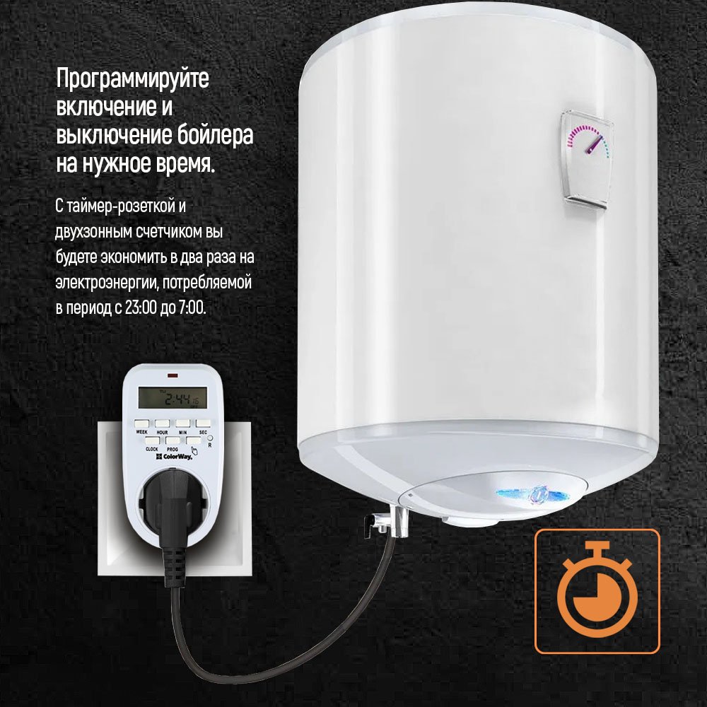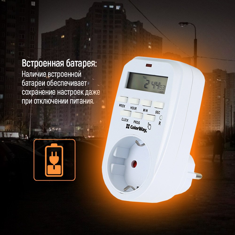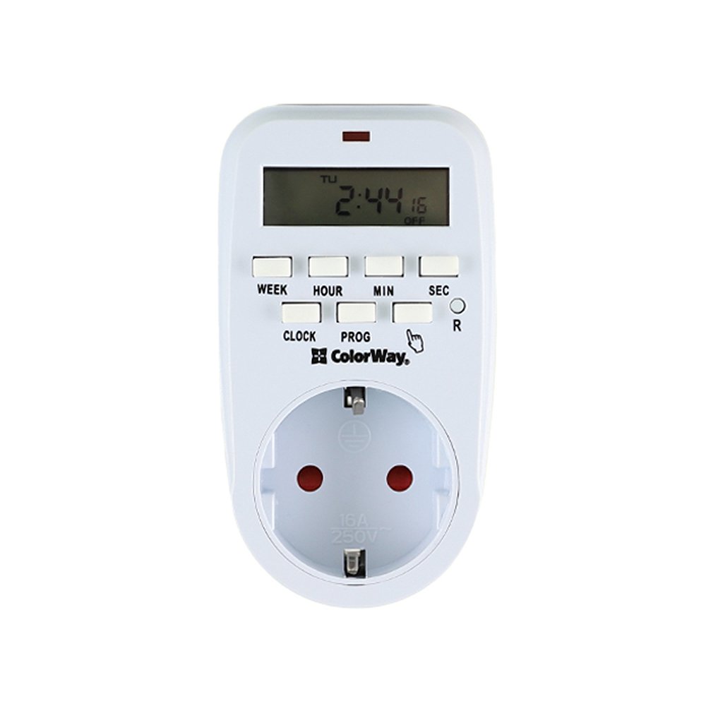 Таймер-розетка ColorWay (16A/3680W) электронный недельный 7D (CW-STE01-7D)