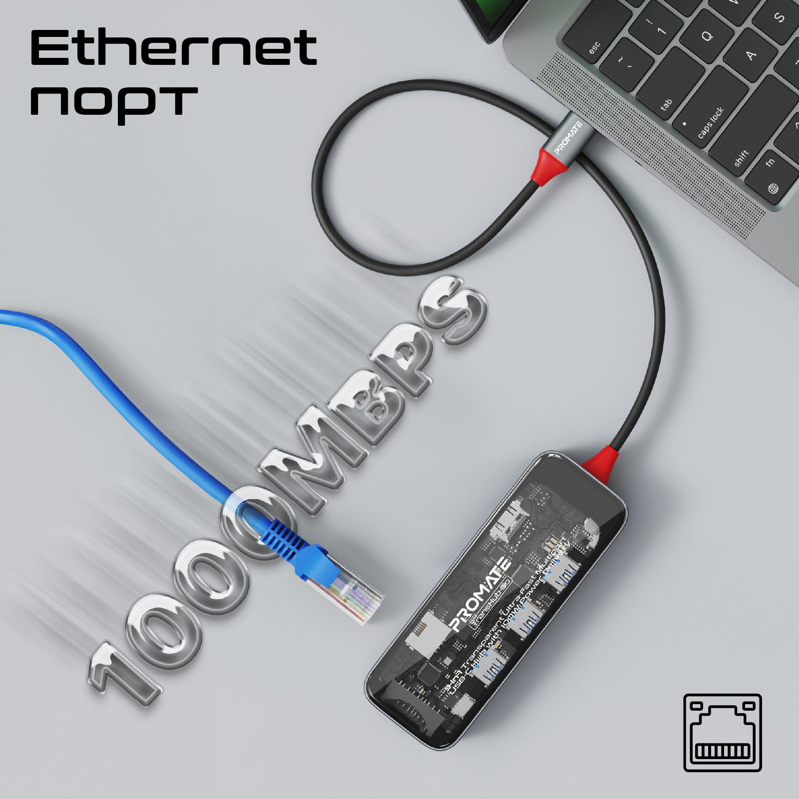 TransHub-Go – Type-C хаб из линейки 2024 года от Promate. Широкий функционал и максимальная стабильность в компактном и стильном корпусе из первоклассных материалов.