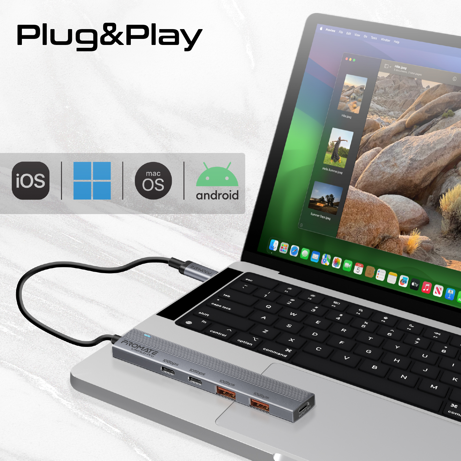 Promate LiteHub-Pro – улучшенная версия популярной модели хаба LiteHub-4. 4 USB порта c пропускной способностью в 10 Гбит/с, передовая система защиты, совместимость с разными устройствами и все это в стильном и прочном корпусе из анодированного алюминия.