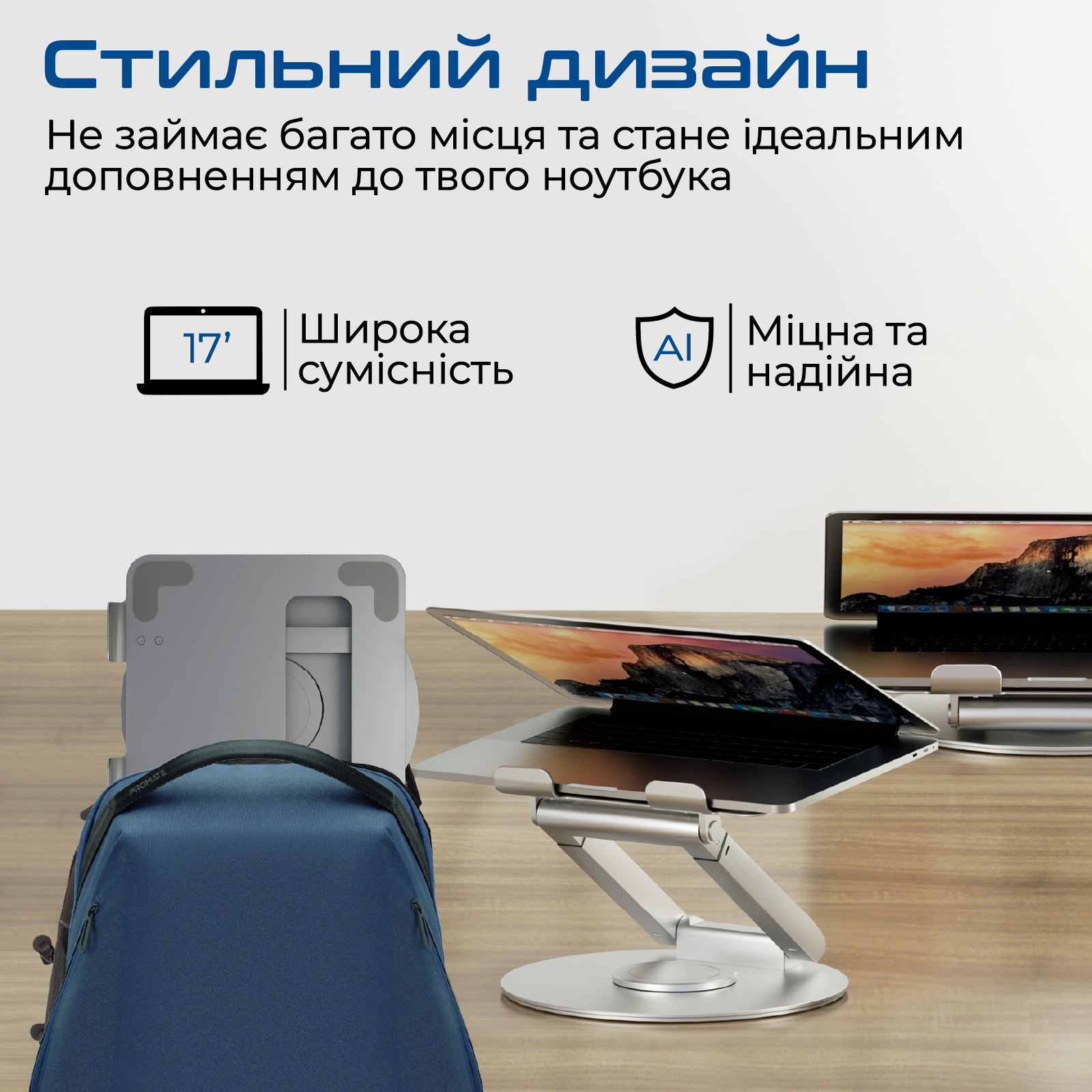 DeskMate-6 – улучшенная версия популярной подставки DeskMate-4 от Promate. Поворачивай ноутбук на 360⁰, регулируй угол наклона и высоту, чтобы с комфортом работать даже стоя за столом.