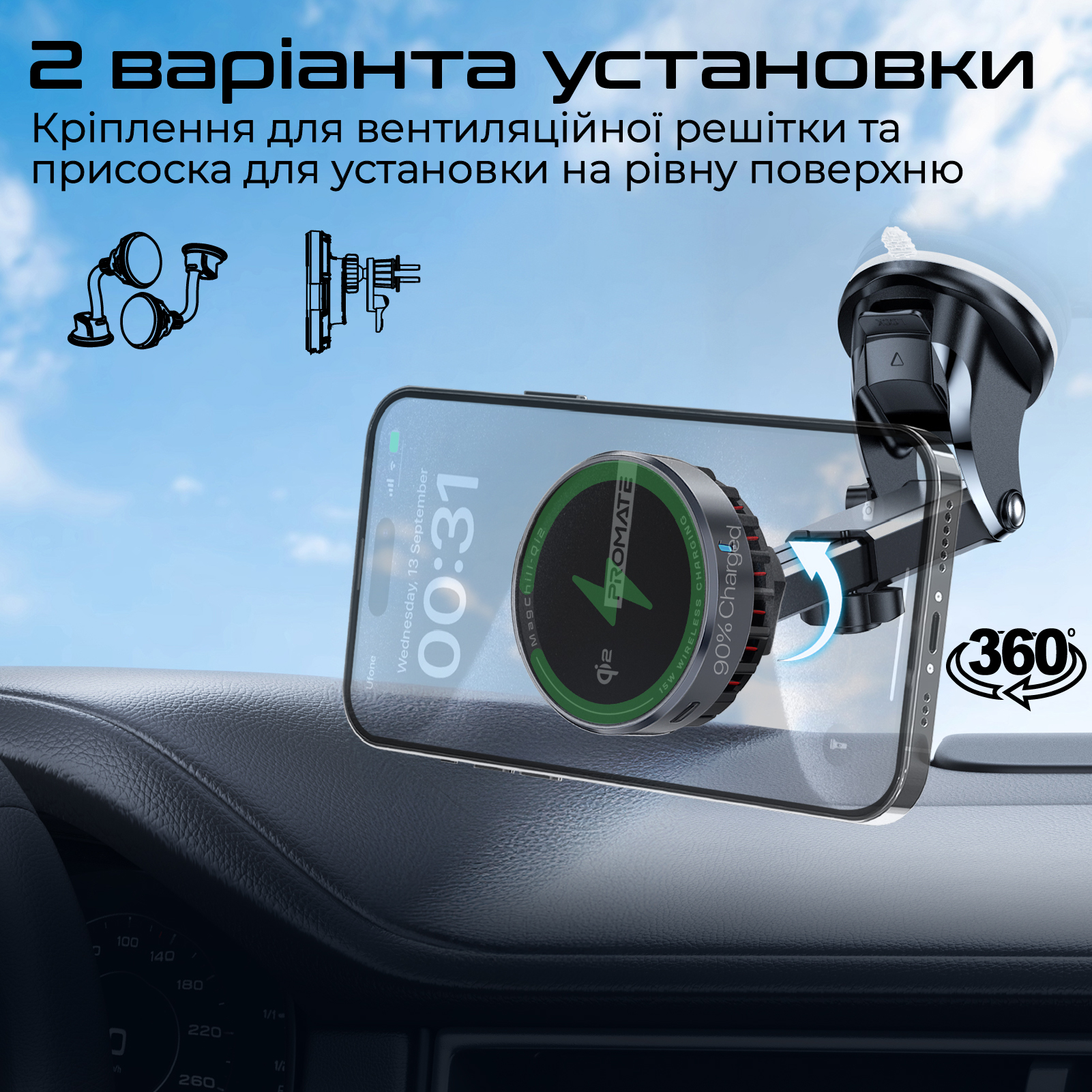 MagChill-Qi2 улучшена версия автомобильного держателя MagChill-Ga от Promate. Различается поддержкой сертифицированной Qi зарядки на 15W. Два вида крепежа для максимального удобства.