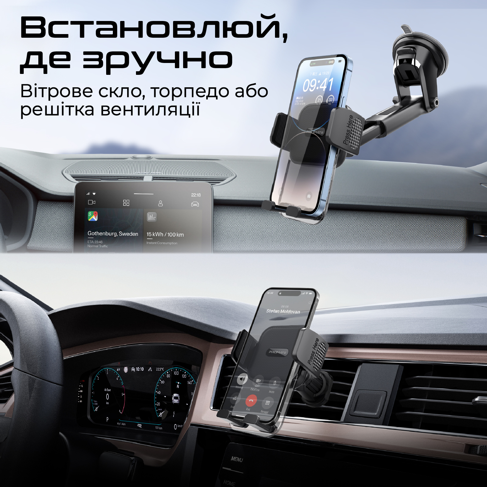 Автодержатель для смартфона Promate TransHold-EXT Black