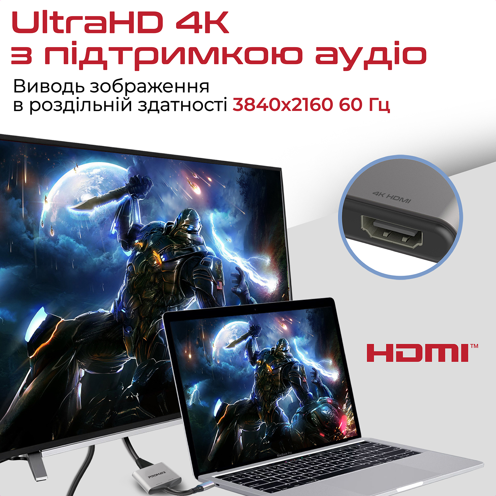 - UltraHD 4K с поддержкой аудио: Выводи изображения в разрешении 3840x2160 60 Гц