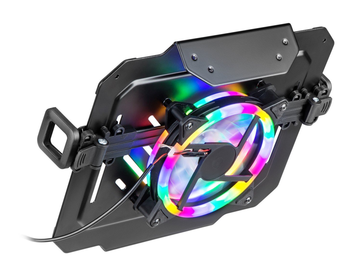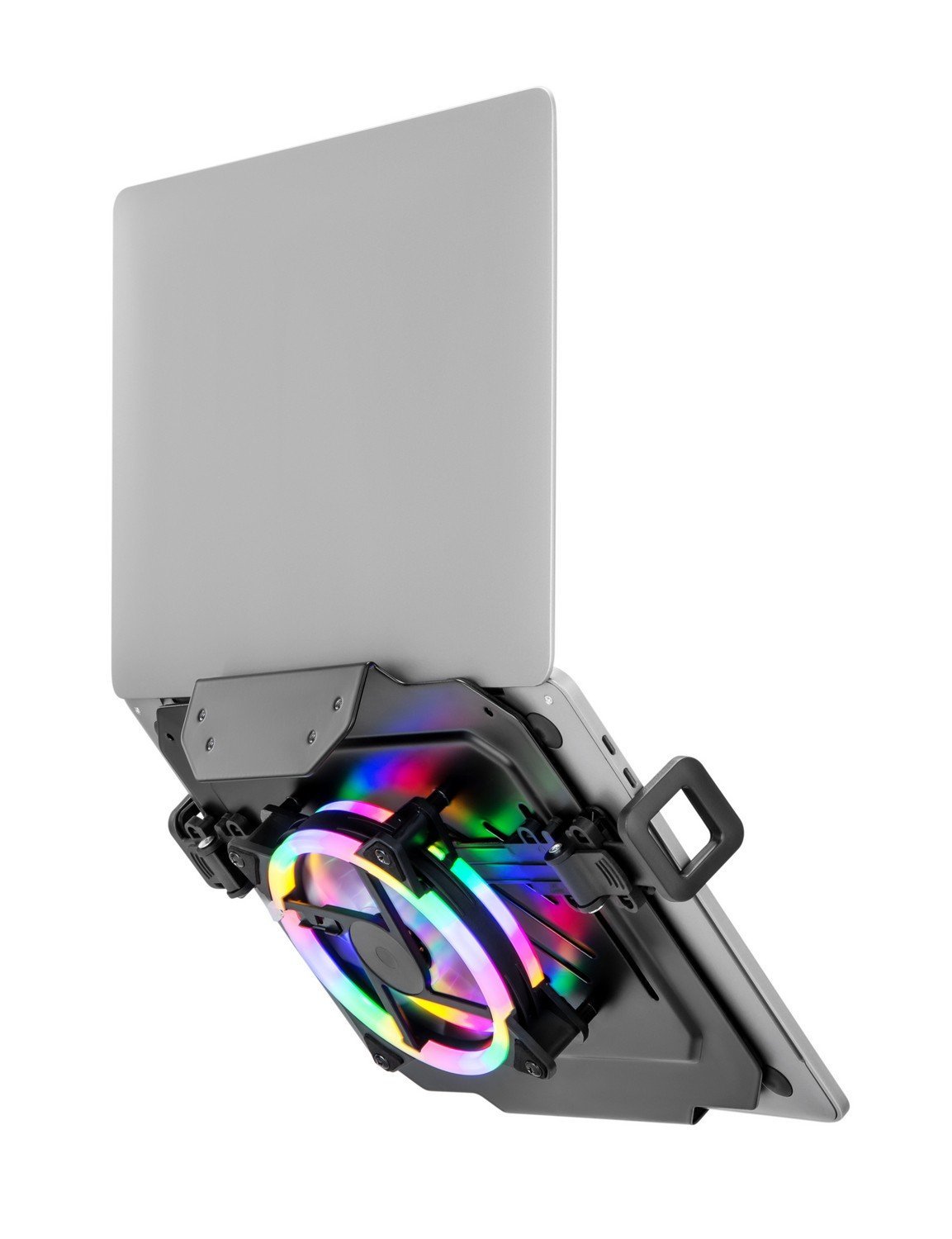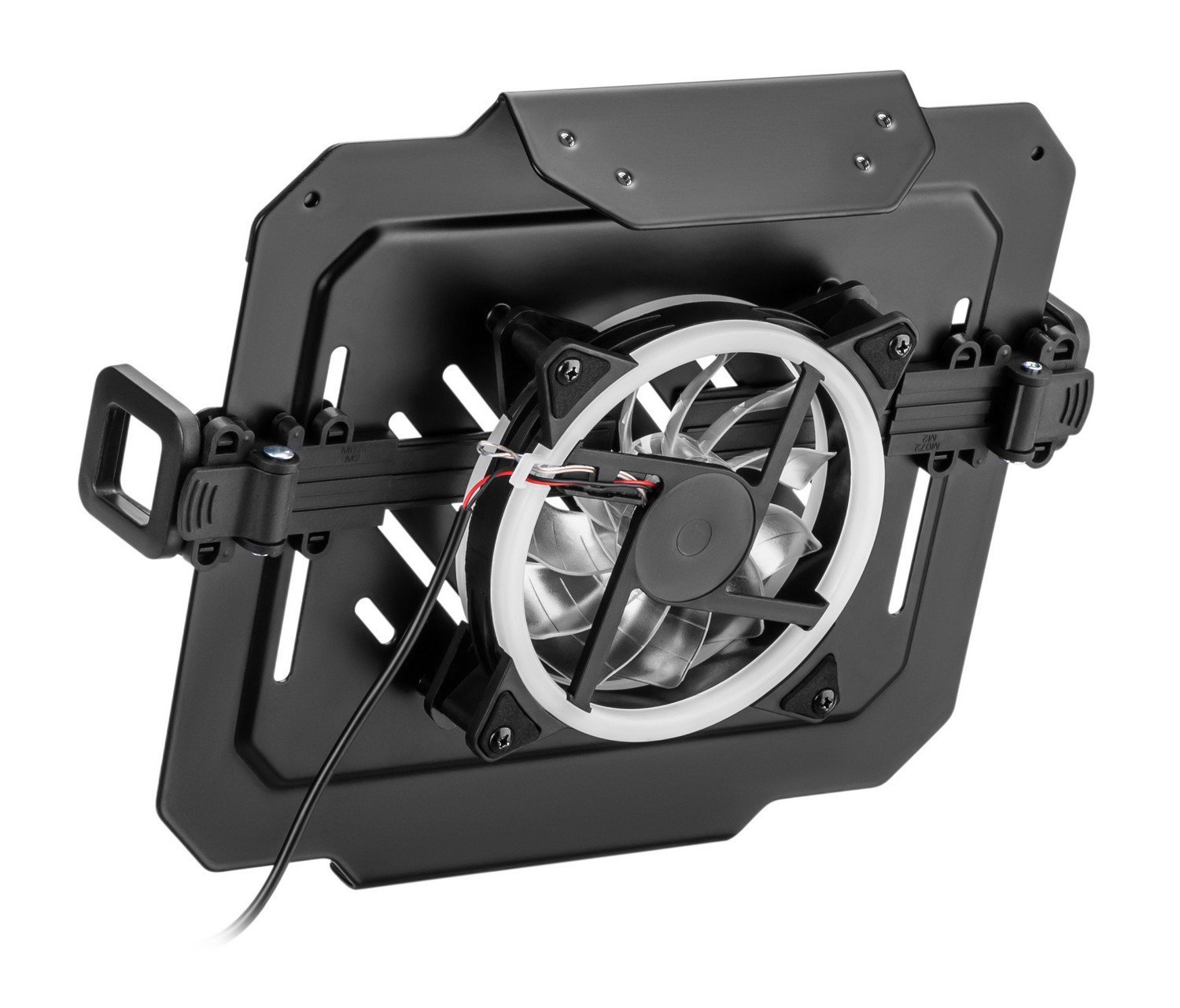 Улучшайте настройки игры с помощью держателя для ноутбука LH474! Это важное оборудование имеет отверстия VESA (75?75, 100?100) для легкой совместимости с большинством кронштейнов для мониторов. Регулируемые зажимы с вырезом для кабеля надежно держат ноутбуки 12’’~17’’, обеспечивая доступ ко всем портам. Наслаждайтесь оптимальной производительностью ноутбука благодаря вентилятору охлаждения с RGB подсветкой, который обеспечивает непрерывный поток воздуха. А вентилируемая панель гарантирует отличное рассеяние тепла. Обновите свой игровой опыт сегодня!