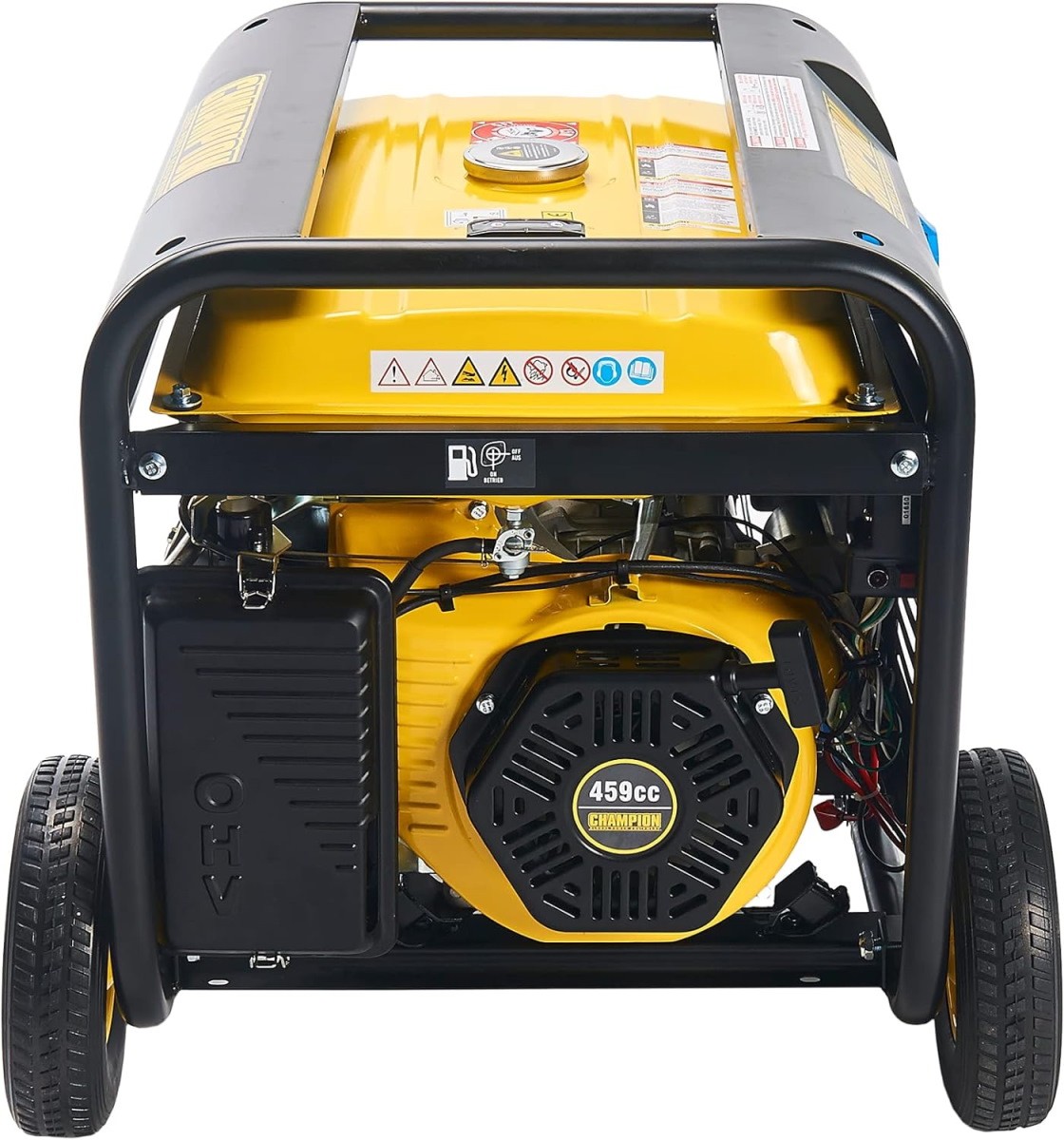 Переносной бензиновый генератор Champion Power Equipment CPG9000E2 – с электрическим запуском оснащен одноцилиндровым 4-тактным двигателем Champion OHV объемом 459 куб. см, отвечающий требованиям стандарта Euro 5 и мощностью 15 л. с., который развивает мощность 7500 Вт при работе и 9375 Вт при запуске.