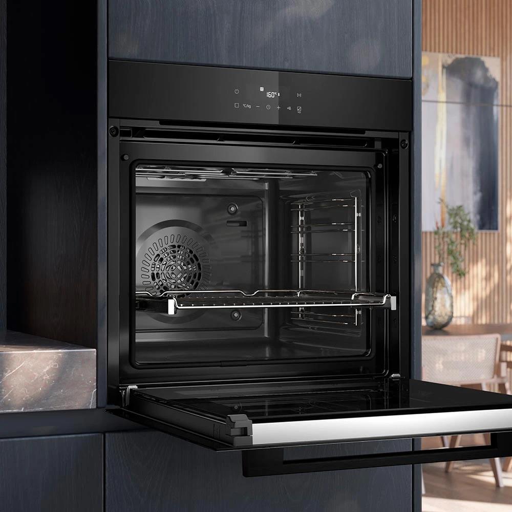 Безопасность также находится на высшем уровне: защита от детей исключает возможность случайного включения духовки, что особенно важно для семей с маленькими детьми. Телескопические направляющие на одном уровне облегчают доступ к готовящимся блюдам, минимизируя риск обжечься.