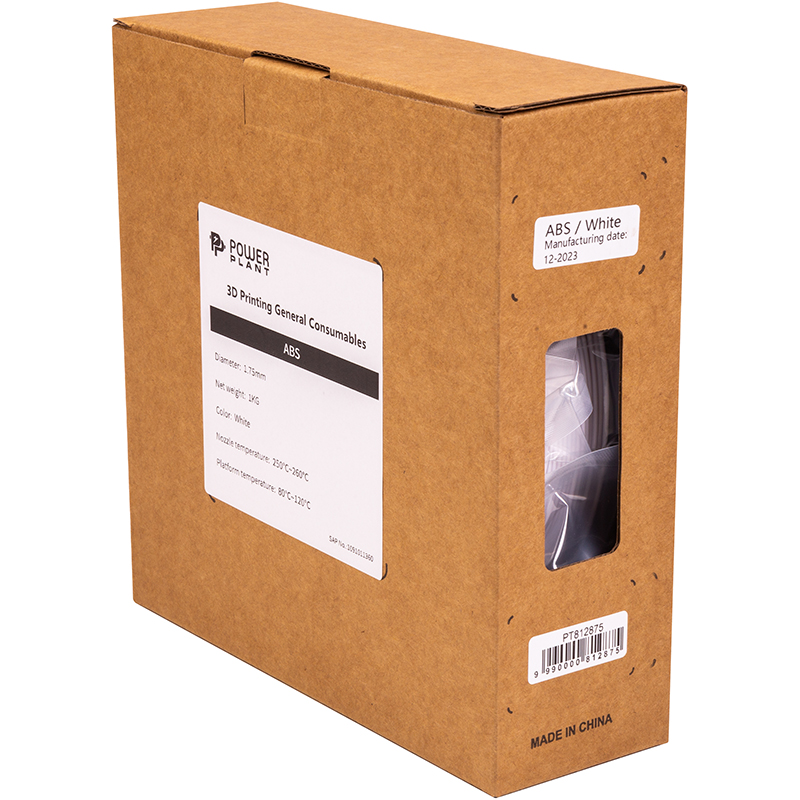 ABS-пластик PowerPlant Filament для 3D-принтера 1.75 мм 1 кг, белый (PT812875)