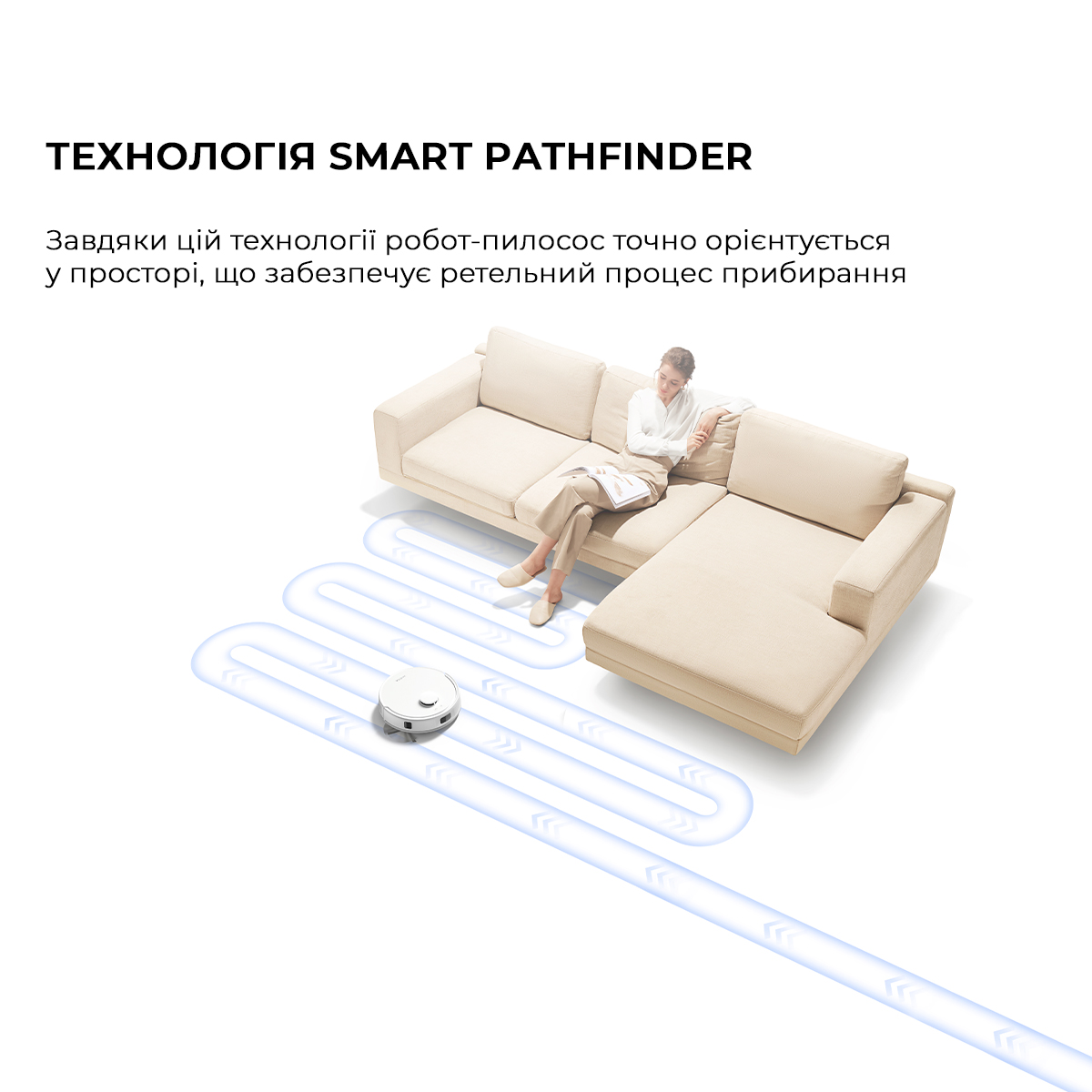 Благодаря усовершенствованной технологии Smart Pathfinder с лазерной системой обнаружения робот-пылесос точно сканирует и создает карты дома даже в темноте. Пылесос Е20 точно ориентируется в доме, замедляясь вблизи помех, чтобы обеспечить тщательный процесс уборки.