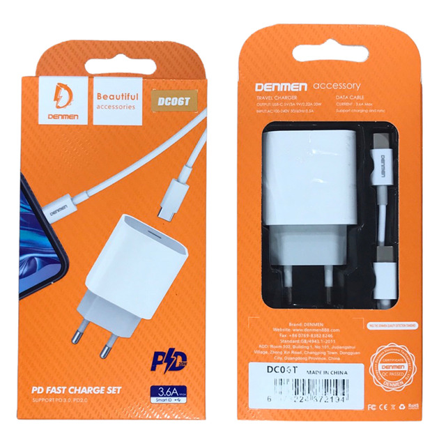Сетевое зарядное устройство Denmen DC06 (1USB 3.6A) PD20W+QC3.0 White (DM-DC06T-WH) + кабель USB Type-C