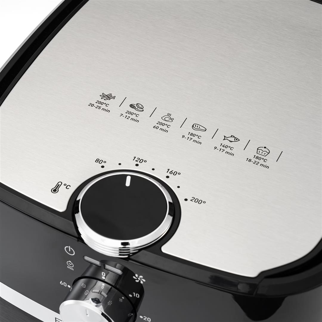 Вы можете выбрать температуру до 200 градусов. Приготовив идеальное блюдо, вы можете легко сохранить время и настройки температуры, чтобы использовать их в следующий раз. Easy Fry&Grill Classic имеет много умных функций, которые облегчают процесс приготовления. Она имеет 60-минутный таймер с громким и четким сигналом, который сообщает о готовности блюда. Некоторые детали можно снимать и мыть в посудомоечной машине.