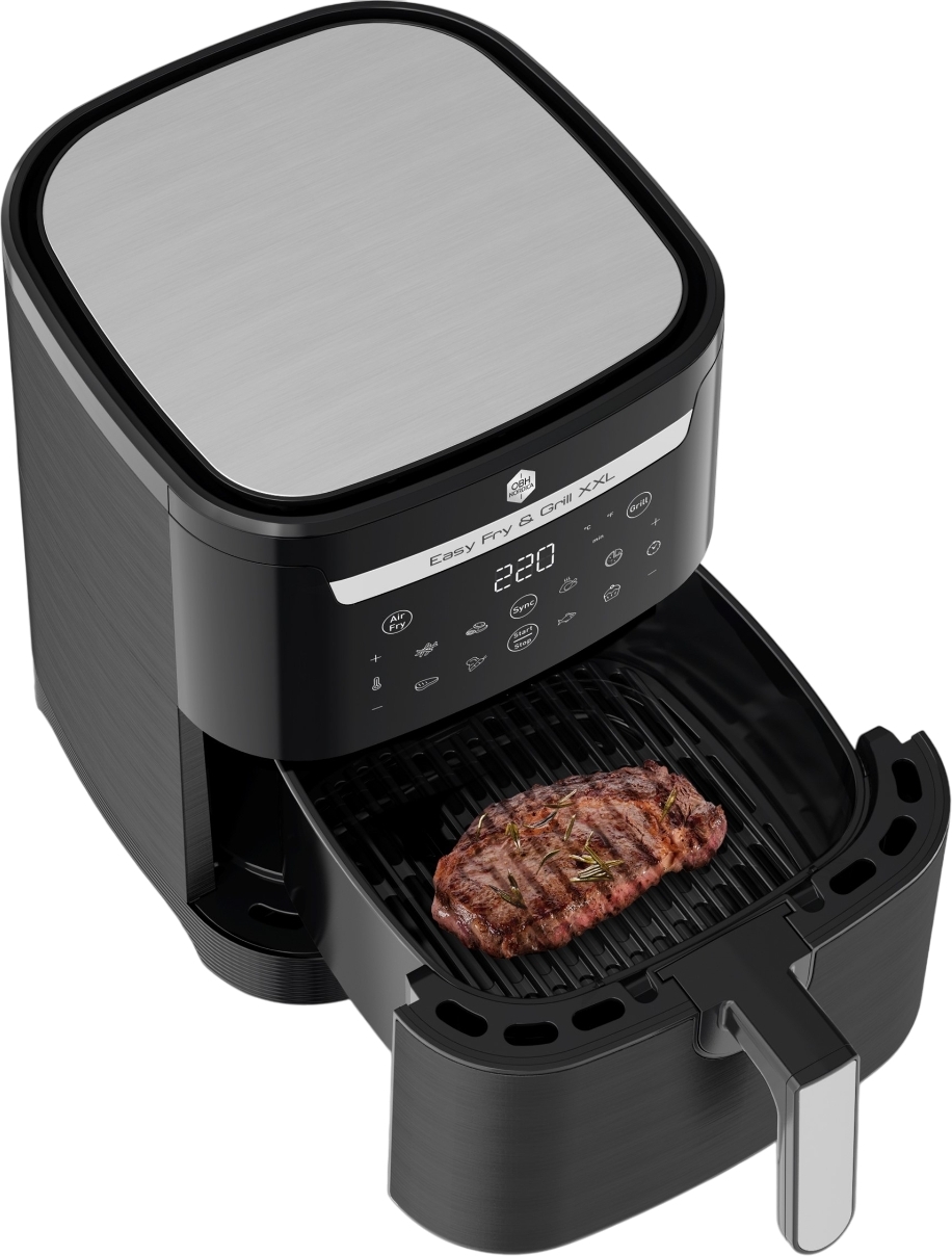 С помощью Easy Fry & Grill XXL вы можете жарить и готовить на гриле одновременно с небольшим количеством масла или вообще без него. Она обеспечивает здоровую пищу без ущерба для вкуса. Мультипечь оснащена мощным вентилятором, который быстро циркулирует чрезвычайно горячий воздух на высокой скорости, что позволяет получить жареное блюдо без добавления масла.