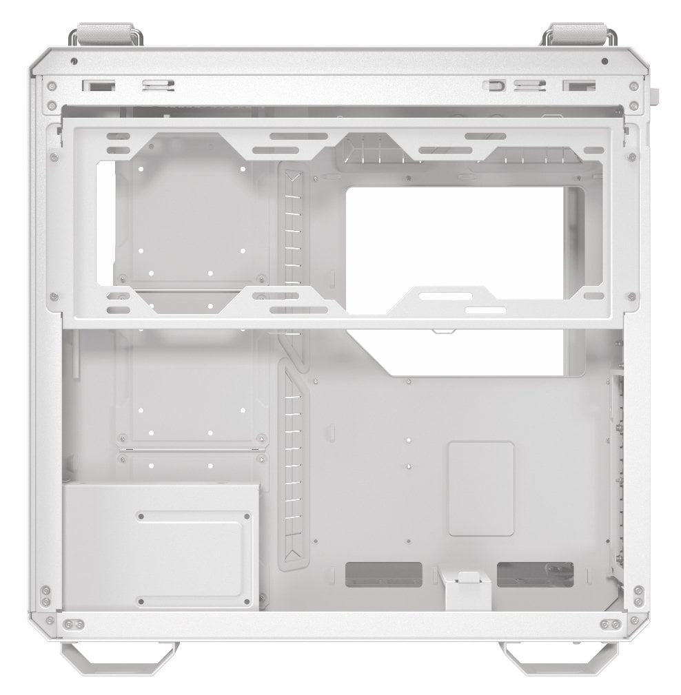 Боковые панели без инструментов. TUF Gaming GT502 Horizon продолжает оптимизацию PC DIY с помощью боковых панелей, которые можно снять простым нажатием кнопки, спрятанной на задней панели корпуса