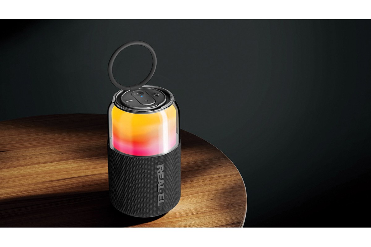 REAL-EL X-705 BLACK — это компактная и стильная портативная колонка с пятью режимами RGB-подсветки, поражающая глубоким и детализированным звуком. Ее можно подключить через Bluetooth или подключи USB-флешку и наслаждайся качественным воспроизведением без проводов.