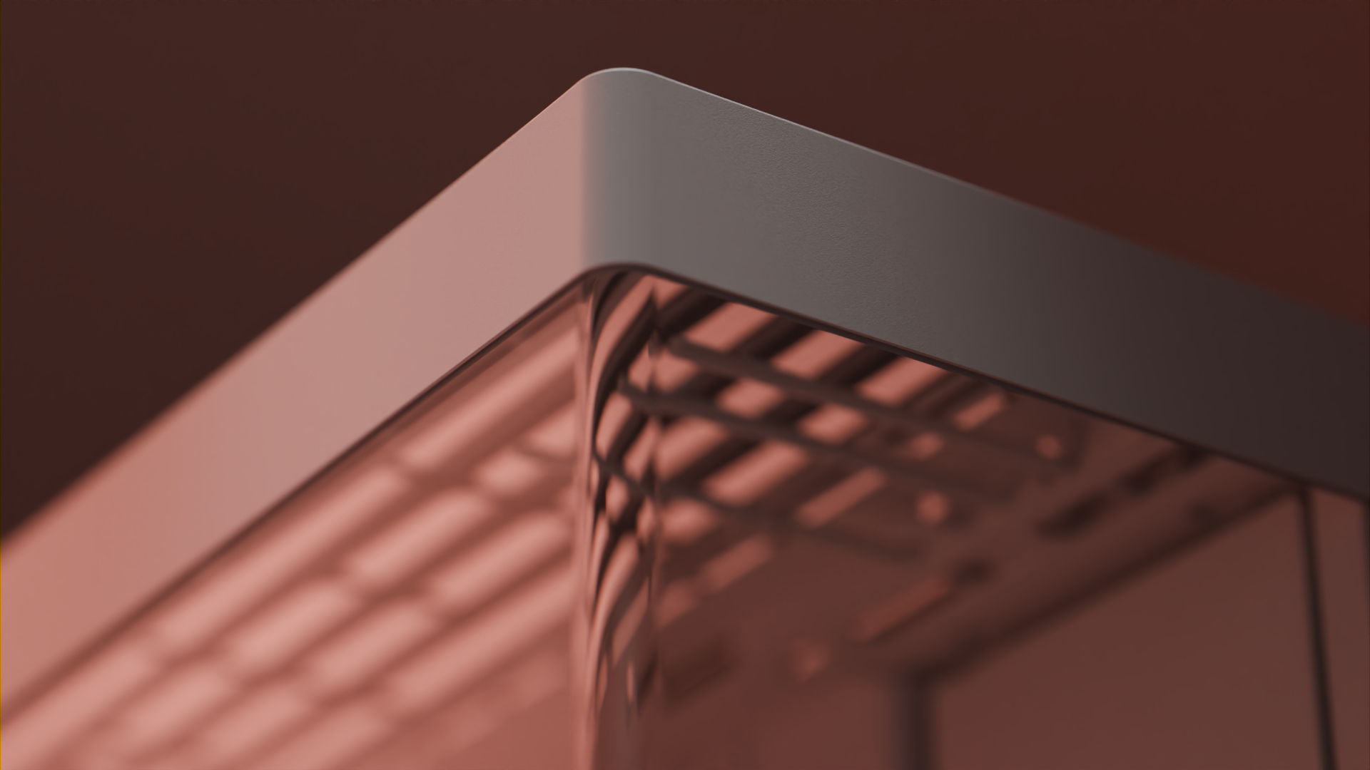 Термоформованная стеклянная панель UniSheet для панорамного обзора. Было брошено вызов ограничениям производства, чтобы создать наименьший возможный радиус изгиба и минимизировать визуальные искажения, обеспечивая пользователю четкий обзор внутренней части корпуса.