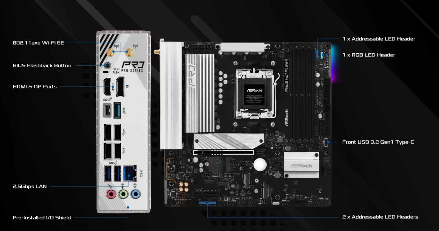 ASRock B850M Pro RS WiFi – это отличный выбор для геймеров и энтузиастов, стремящихся построить высокопроизводительную систему на базе новейших процессоров, видеокарт и скоростных SSD.