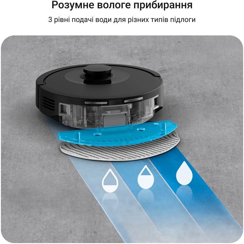 Робот-пылесос обеспечивает точность и эффективность уборки благодаря системе Smart Aqua Power с 3 уровнями подачи воды, которые можно установить в зависимости от типа пола.