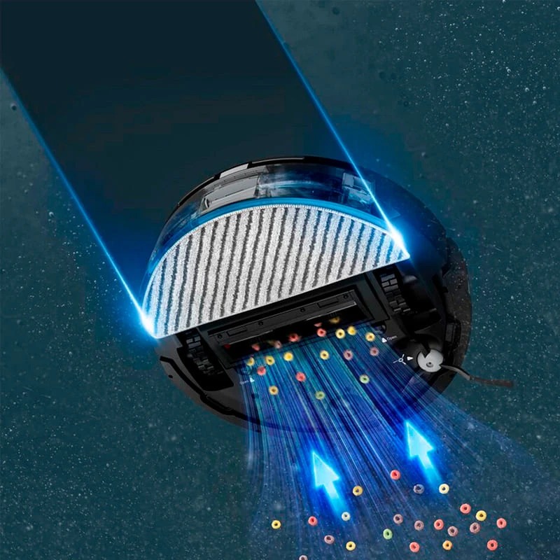 С помощью боковой щетки робот-пылесос убирает в углах и труднодоступных местах, со щеткой Turbo Brush робот убирает мусор, волосы и пыль, его передовой мотор BLDC обеспечивает мощное всасывание 6000 Па.