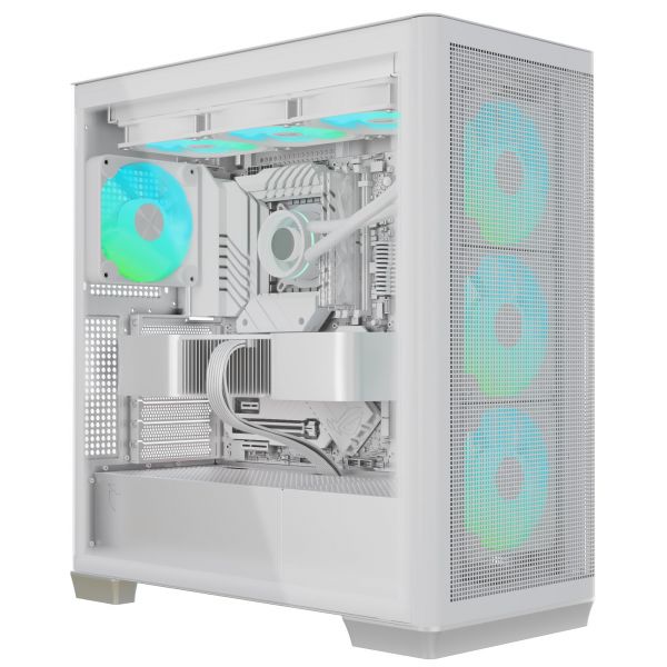 В комплект корпуса входят стильные и мощные вентиляторы APNX FP1 с регулировкой скорости вращения PWM и подсветкой ARGB. Их толщина 30 мм обеспечивает более высокую производительность по сравнению с моделями толщиной 25 мм.