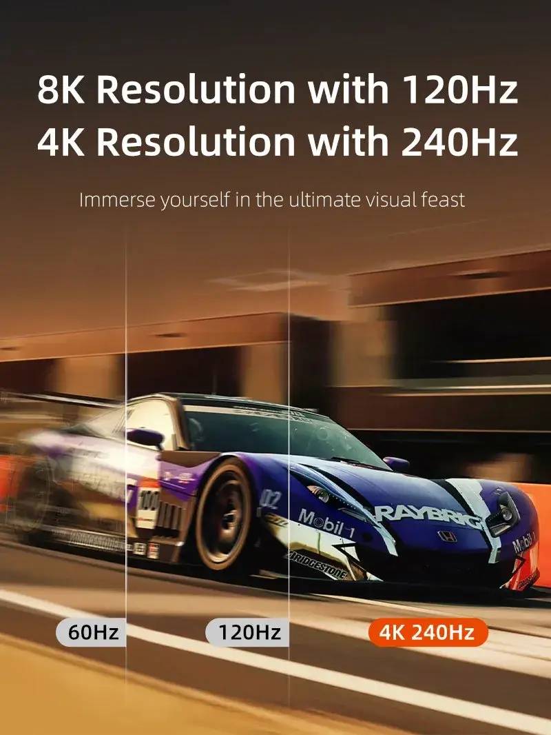 Откройте для себя будущее технологий отображения с нашим кабелем Ultra 16K DisplayPort 2.1. Кабель CABLETIME DP 2.1 обеспечивает реалистичное разрешение 16K@60Hz, 10K@60Hz, 8K@120Hz и 4K@144Hz, а также пропускную способность 80 Гбит/с. Это делает его идеальным для отображения реалистичных изображений для всех игровых и рабочих потребностей.
