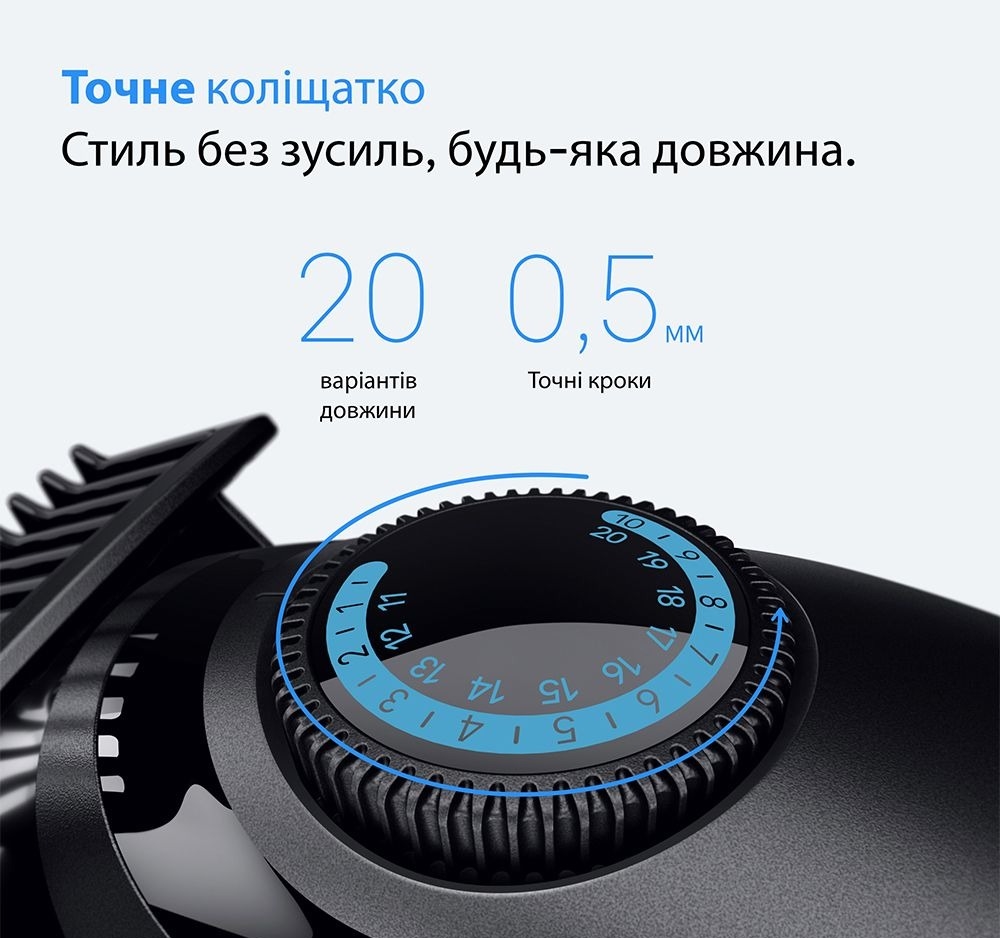 Уход за стилем: сохраняйте полный контроль при каждом использовании благодаря точному колесику и 20 настройкам длины с шагом 0,5 мм.
