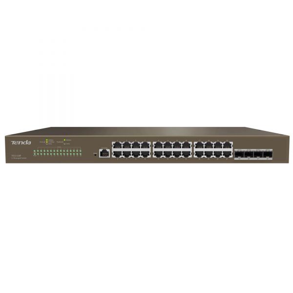 TEG5328F — управляемый коммутатор Tenda третьего уровня. Для обеспечения высокопроизводительного доступа коммутатор оснащен 24 портами Base-T Ethernet 10/100/1000 Мбит/с и 4 отдельными портами Base-X SFP 1000 Мбит/с. Благодаря инновационной аппаратной структуре и программной платформе, он обладает высокой вычислительной мощностью и комплексным механизмом защиты, что упрощает управление и обслуживание, полностью удовлетворяя требованиям к доступу с высокой плотностью пользователей и высокопроизводительной агрегации. Идеально подходит для уровня агрегации или уровня ядра сетей среднего и крупного размера, таких как корпоративные сети и кампусы.