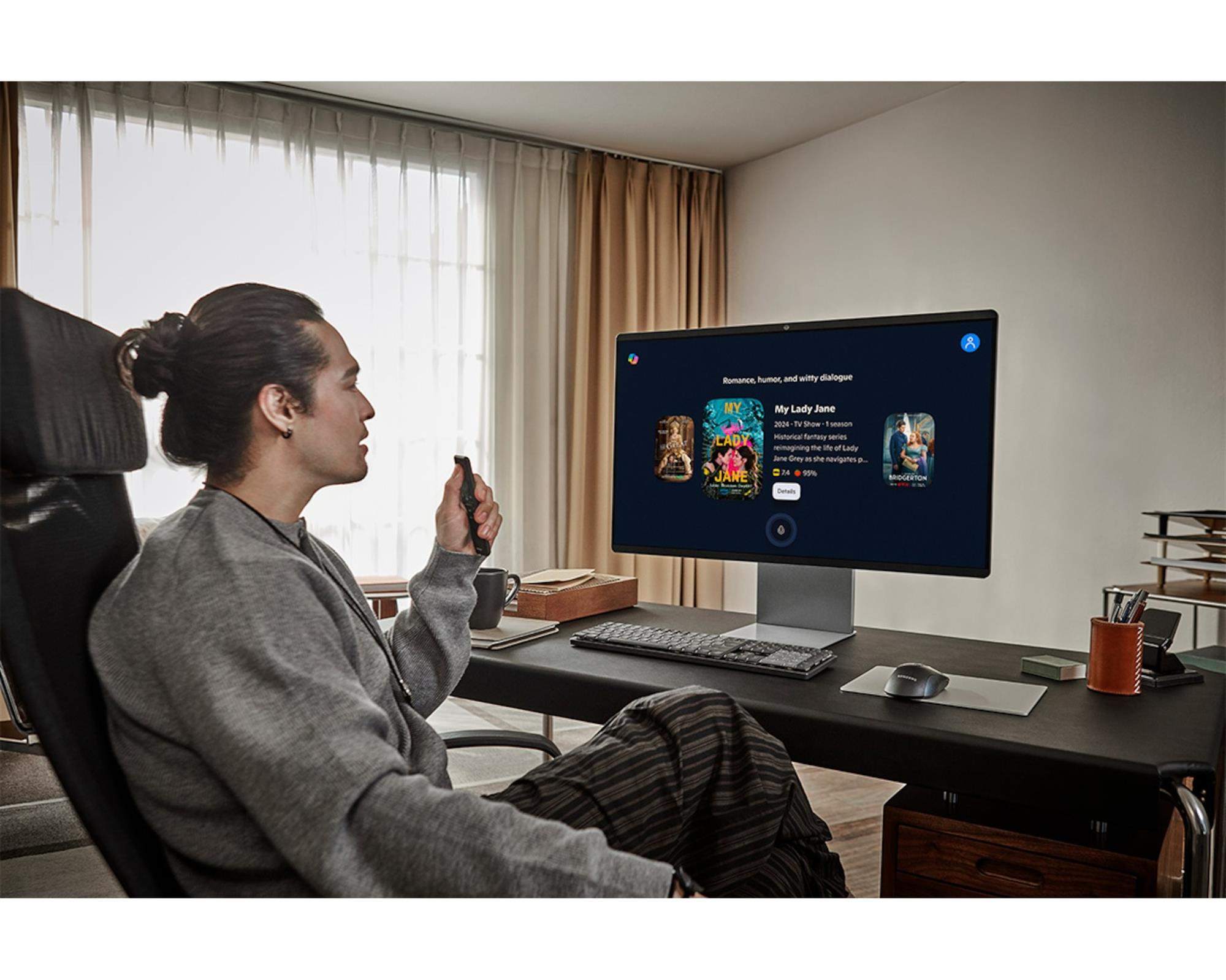 AI масштабирование 4K Pro. Раскройте весь потенциал 4K-экрана, транслируя контент прямо на монитор. Функция AI масштабирования на основе процессора NQM AI Gen3 улучшает контент с низким разрешением почти до 4K, давая развлечениям новые уровни четкости.