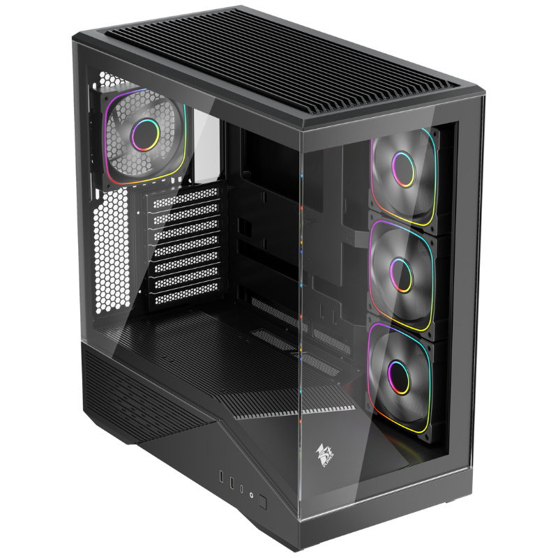Панорамный обзор 270°: благодаря использованию закаленного стекла на передней и боковой панелях без перегородки на углу вы получаете беспрепятственный вид на внутренние компоненты вашей системы.