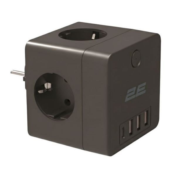 Сетевой адаптер 2E сочетает функции сетевого фильтра, разветвителя и зарядной станции. Благодаря четырём розеткам типа F с заземлением, к нему можно подключить ПК, монитор и другие бытовые или офисные устройства с максимальной нагрузкой до 3680 Вт.