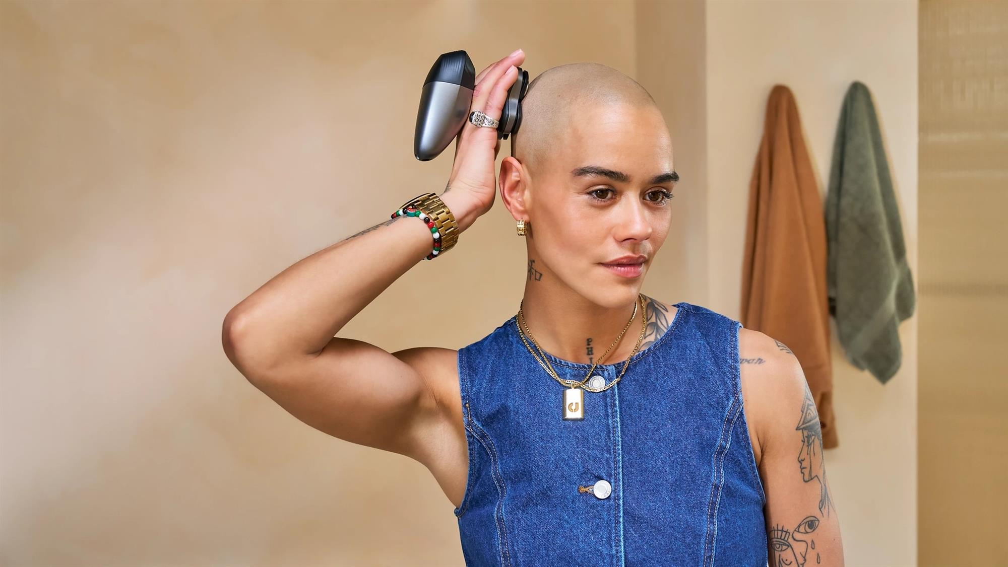 Брейте волосы в любом направлении благодаря головке, изгибающейся на 360 градусов