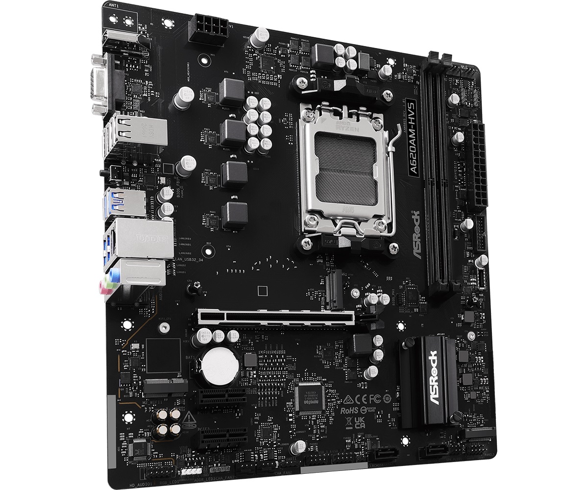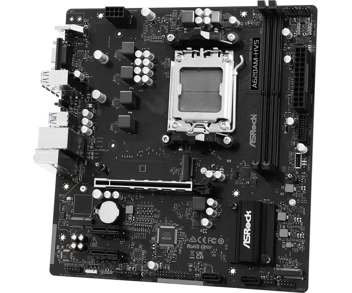 ASRock A620AM-HVS станет отличным выбором для тех, кто ищет баланс между ценой и возможностями, создавая современный и функциональный ПК без переплат.